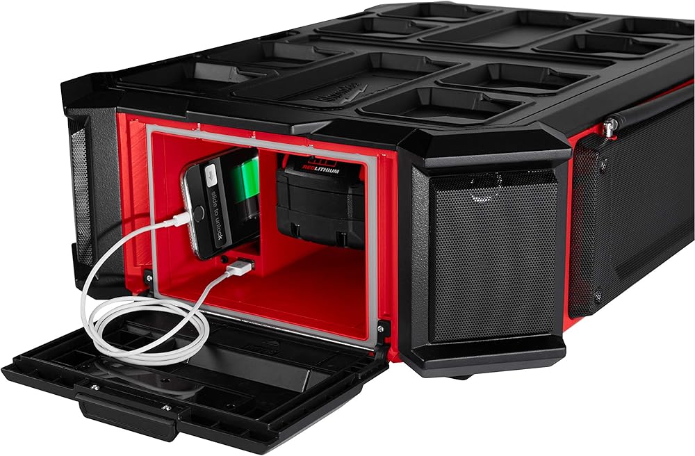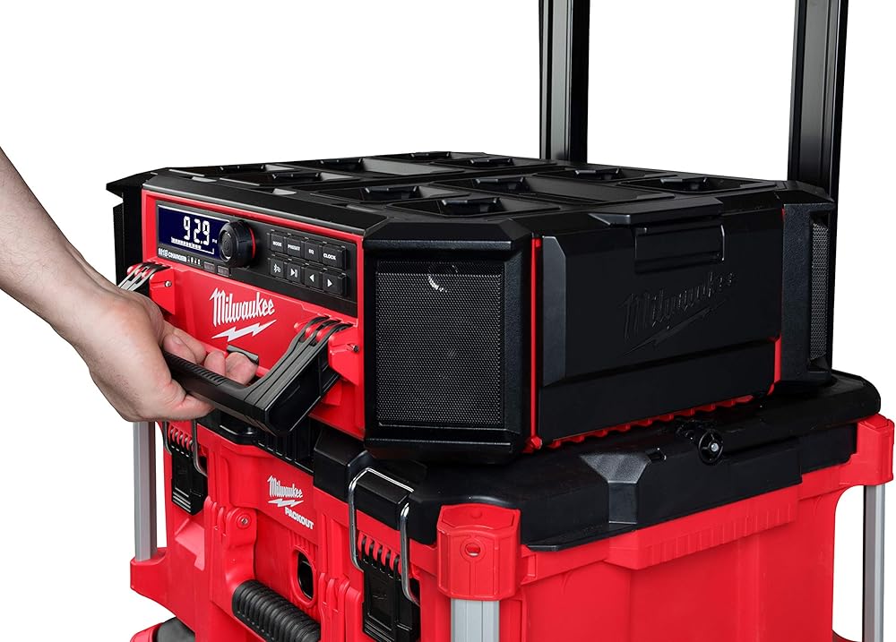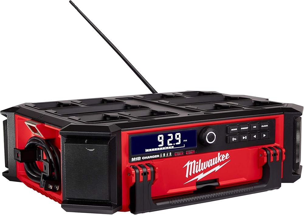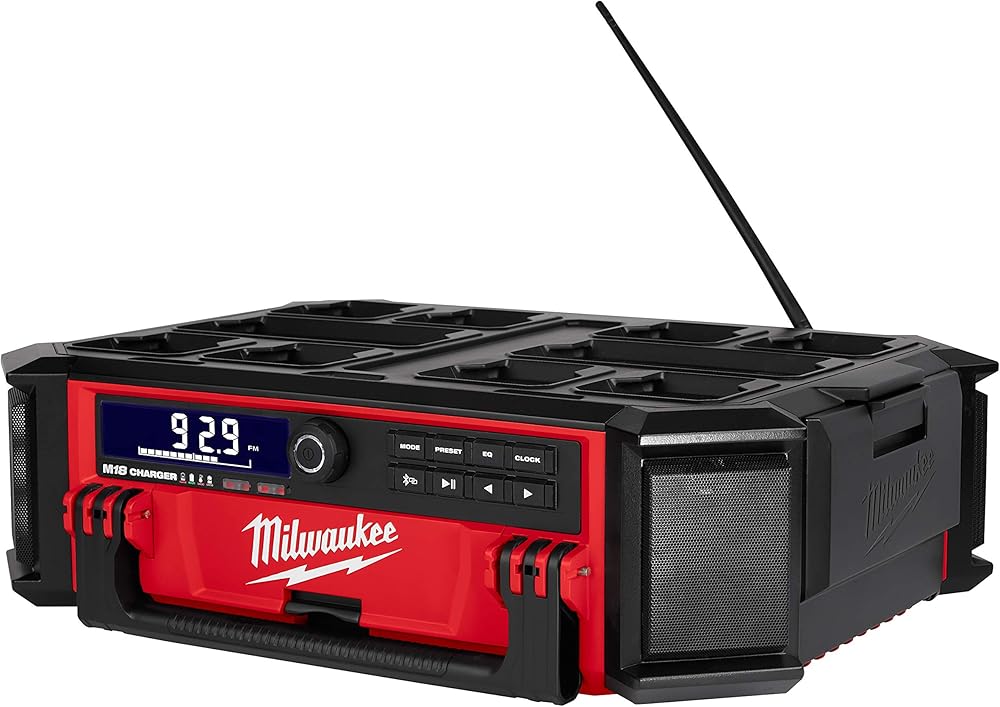 التفاصيل: الميزات والفوائد: 10 مكبرات صوت: صوت متوازن 360 للمساحات الكبيرة والخارجيةمصمم لنظام التخزين المعياري باك اوت: التوافق الكامل: يشحن جميع بطاريات M18 والأجهزة المحمولة بسلك 6 بوصة ومخرج USB 2.1A مزود ببلوتوث 4.2: بث الصوت لاسلكيًا من أكثر من 100 قدم راديو AM/FM ::: 18-محطة محطة إعدادات مسبقة مع هوائي أكثر متانة، راديو ميلووكي M18 باك اوت + شاحن هو نظام صوت وظيفي مثالي، متوافق تمامًا مع جميع حلول أنظمة التخزين من باك اوت. يوفر نظام الصوت 10 مكبرات صوت هذا صوتًا 360 درجة. يوفر راديو ميلووكي M18 لموقع العمل اتصالاً كامل النطاق مع بلوتوث 4.2 ومدخل إضافي وراديو ايه ام/اف ام. يتميز مكبر الصوت البلوتوث أيضًا بشاحن M18 مدمج. يحتوي راديو موقع العمل شديد التحمل هذا على مخرج USB 2.1 امبير في الساعة للحفاظ على بطاريات M18 والأجهزة المحمولة مشحونة طوال اليوم.