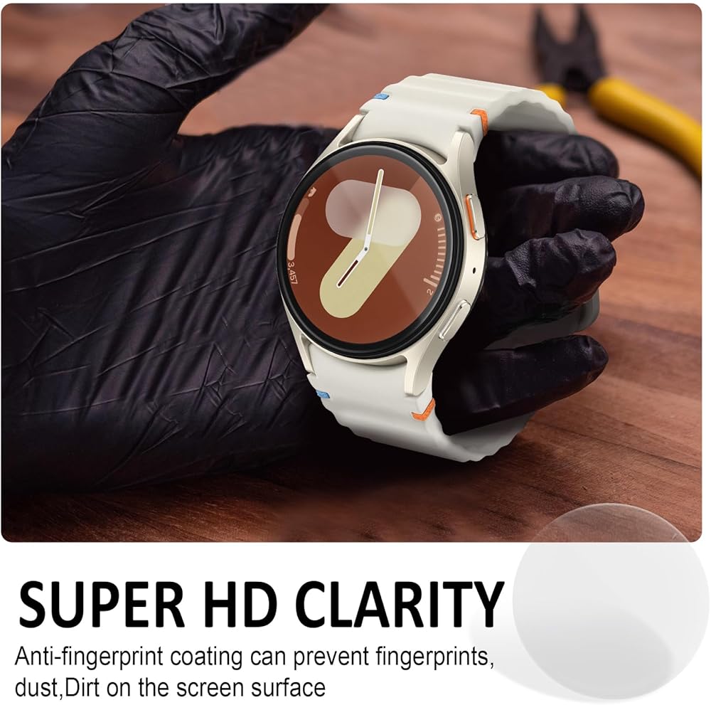 دقة عالية: شاشة حماية لساعة جالكسي 6 / شاشة حماية ساعة جالكسي 5 / شاشة حماية ساعة جالكسي 4 مصنوعة من مادة الزجاج المقوى، تتميز بشفافية عالية وانعكاس منخفض للغاية، ونفاذية ضوء بنسبة 99%، تكشف عن اللون الحقيقي لساعة سامسونج 4 أو ساعة سامسونج 5 أو ساعة سامسونج 6 40 ملم، يتميز الغشاء الزجاجي المقوى بشفافية عالية وانعكاس منخفض للغاية.