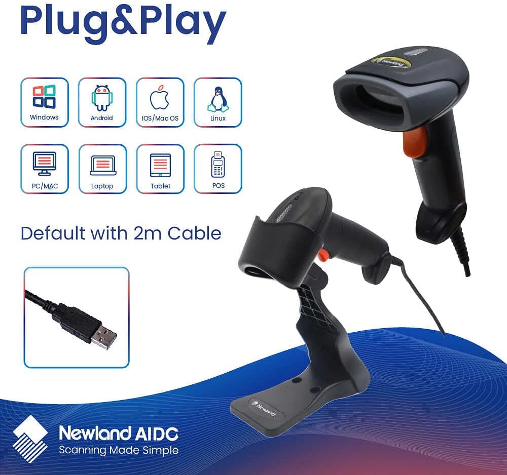 لا حاجة للبرامج، فهو ماسح شريطي USB القابس والتشغيل يمكنه قراءة جميع الرموز الشريطية 1D القياسية والشائعة.