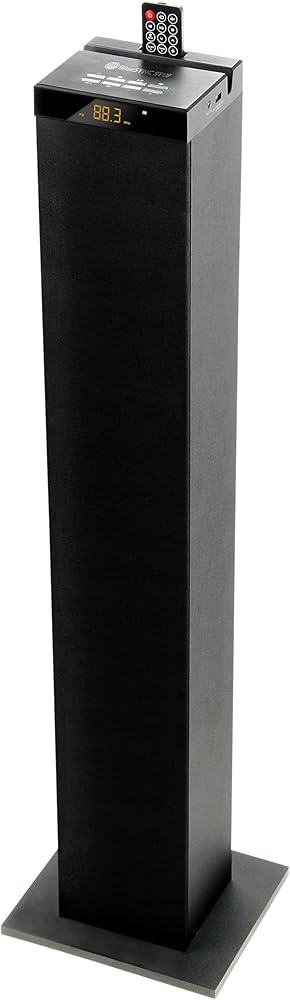 مكبر صوت برجي بلوتوث من GOgroove مع مضخم صوت مدمج - مكبر صوت منزلي قائم على الأرض مزود بجهير قوي ومشغلات مزدوجة، طاقة ذروة 120 وات، MP3 3.5 ملم Aux، محرك فلاش USB 2.0، راديو FM (مفرد)