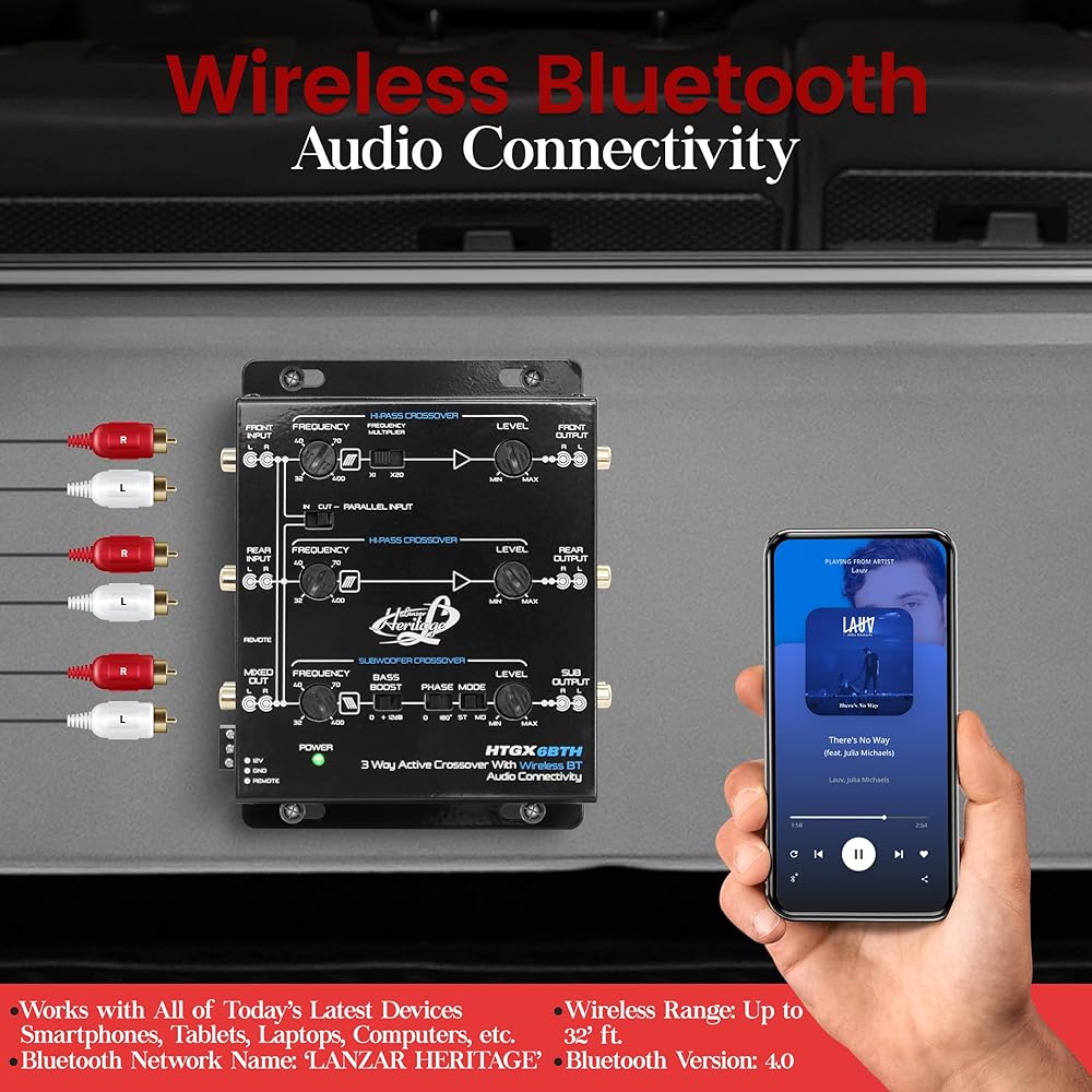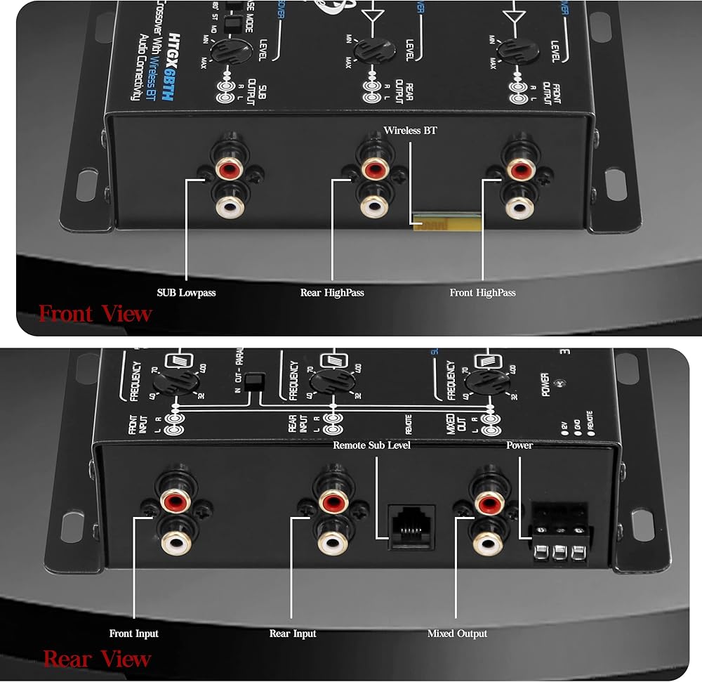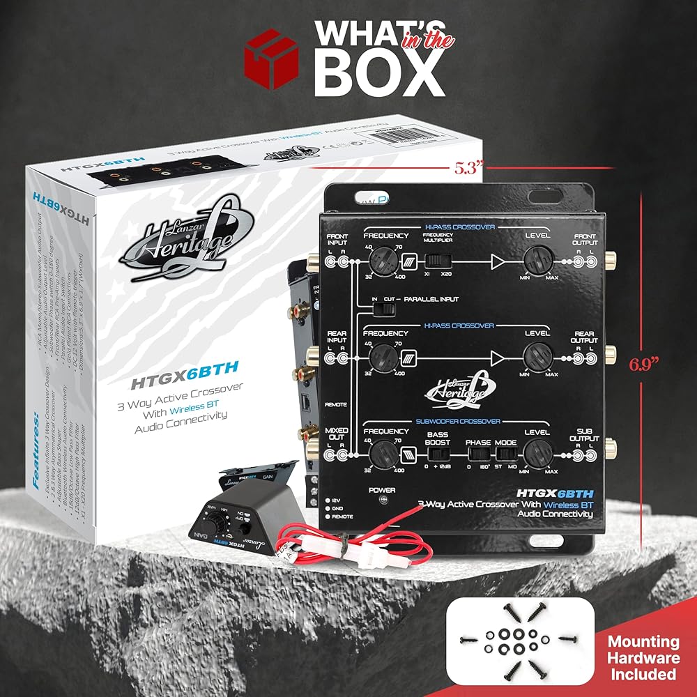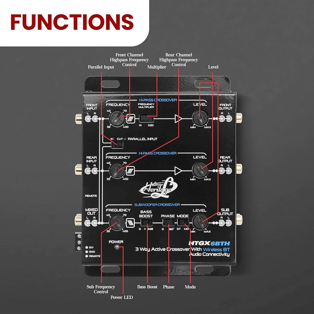 لانزار 2 و3 اتجاهات كروس اوفر مع اتصال صوتي لاسلكي بلوتوث، مشكل باس غير متماثل قابل للتعديل، 18 ديسيبل او 12 ديسيبل لكل منحدر اوكتاف قابل للاختيار، ستيريو ار سي ايه مونو (HTGX6BTH)