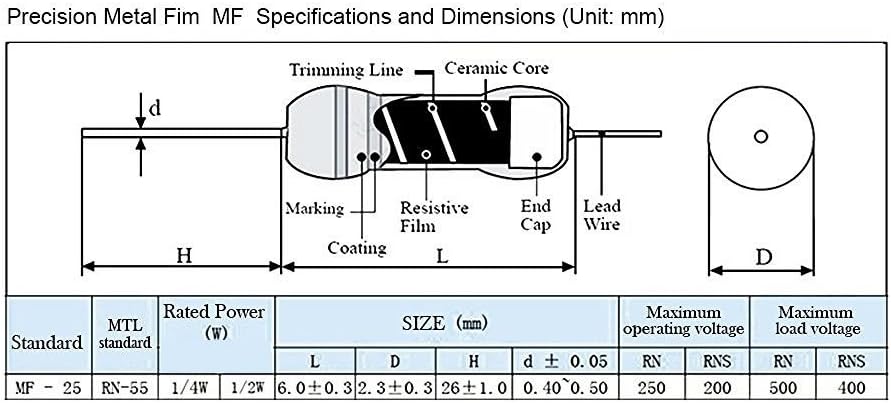 - ±1% تحمل، 1/4 واط، فيلم معدني.