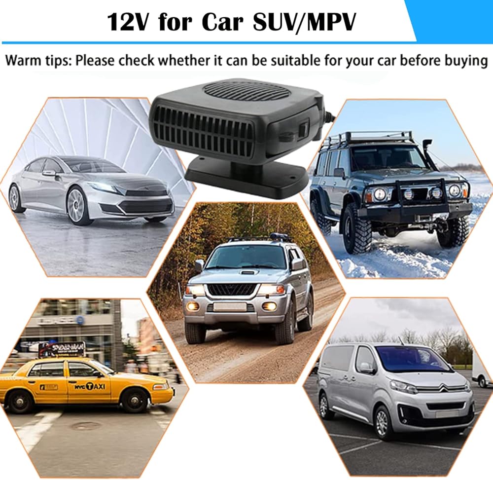 • 【طاقة عالية وتسخين سريع】 سخان سيارة مطور، طاقة متزايدة 200 واط، زيادة درجة حرارة الهواء، إزالة الضباب وإزالة الجليد وتحسين سلامة رؤية القيادة. إنه مساعد جيد في السيارة في الشتاء.