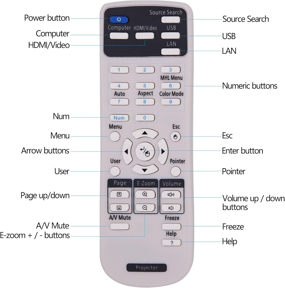 【Identical To the original】Identical To the original: The function and appearance, the size of the buttons, etc. They are exactly the same as the Epson Projector original remote.Fully compatible with Projector. Lightweight, just like your old remote control.