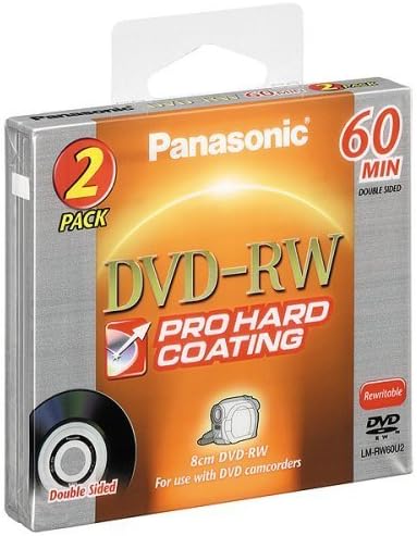 باناسونيك عبوتان من أقراص DVD-RW مزدوجة الجوانب مقاس 60 دقيقة (2.8 جيجابايت) مقاس 8 سم مع طلاء صلب احترافي لكاميرات الفيديو DVD. (بدون حافظة مستديرة)