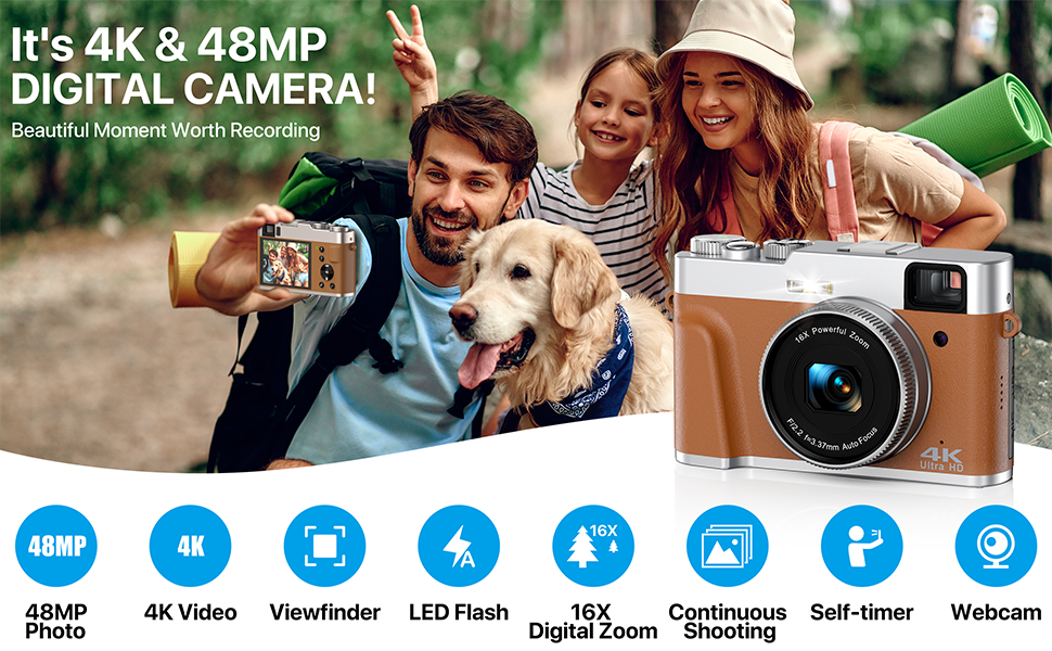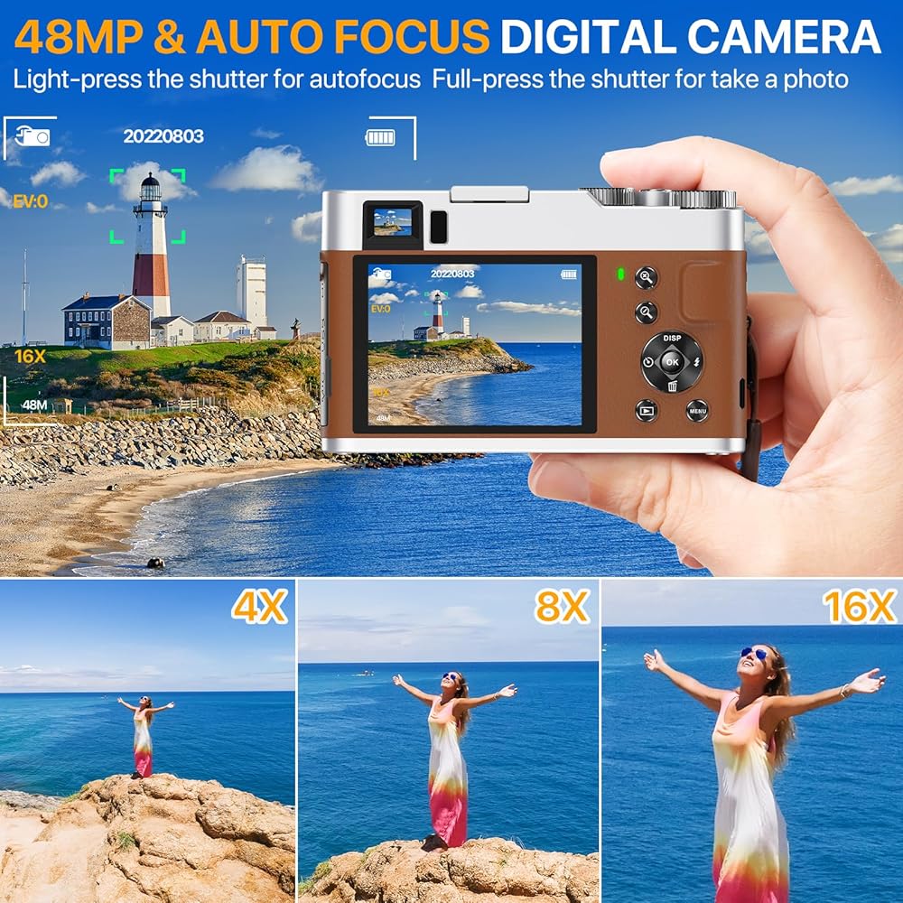 📷[كاميرا رقمية ذات تركيز تلقائي بدقة 48 ميجابكسل] تتميز الكاميرا الرقمية بدقة صورة تبلغ 48 ميجابكسل، وهي مجهزة بمستشعر CMOS الأكثر تقدمًا لتقديم ألوان غنية وأفضل التفاصيل. يعتمد رقاقة التركيز التلقائي، ويدعم التركيز التلقائي والتكبير الرقمي 4X 8X 16x، والتقاط صور واضحة ونابضة بالحياة، قل وداعًا لإزالة التركيز البؤري والضبابية. ليس هناك شك في أن هذه الكاميرا الرقمية هي مساعد كبير لسجل حياتنا اليومية!