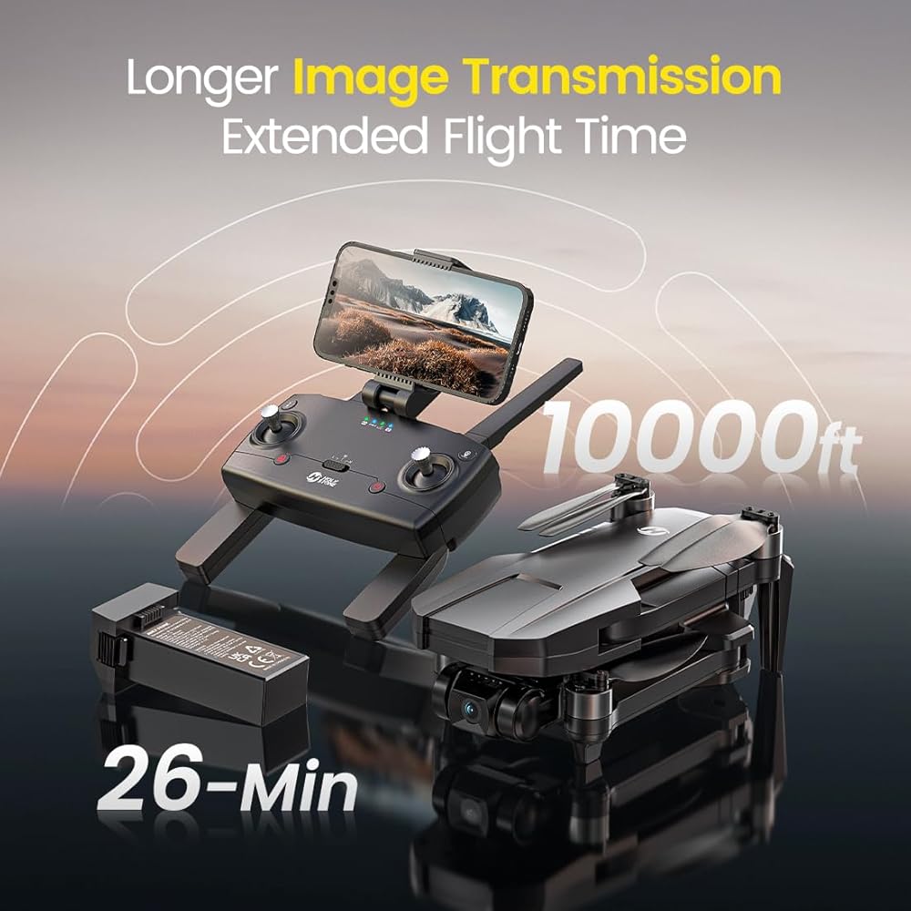 • [نقل طويل المدى مطور بطول 10,000 قدم] مع أحدث نظام للتحكم عن بعد من Holy Stone ومحركات قوية بدون فرش، HS720R، طائرات بدون طيار مع كاميرا للبالغين 4K، تحصل على نطاق نقل أقصى يصل إلى 10,000 قدم. البطارية المعيارية الذكية المطورة بقدرة 2950 مللي أمبير في الساعة، والتي تدعم 26 دقيقة من الطيران، بالإضافة إلى نظام التحكم المتقدم الذي يضمن لك الطيران لمسافات أبعد والتقاط المزيد.