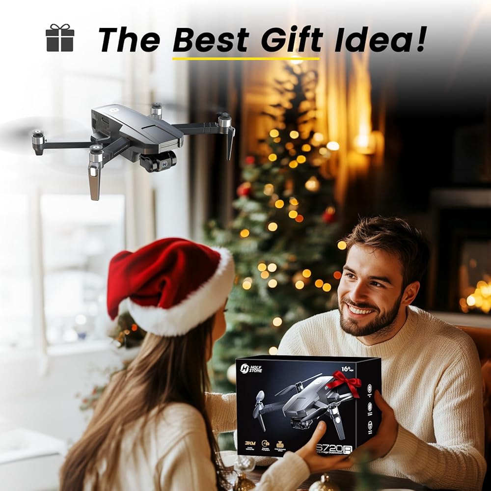 طائرات بدون طيار من Holy Stone HS720R ذات 3 محاور Gimbal GPS مع كاميرا للبالغين 4K EIS؛ طائرة بدون طيار FPV RC، طائرة كوادكوبتر قابلة للطي مع نطاق تحكم في نقل الفيديو بطول 10000 قدم، محرك بدون فرشاة، اتبعني، إرجاع تلقائي