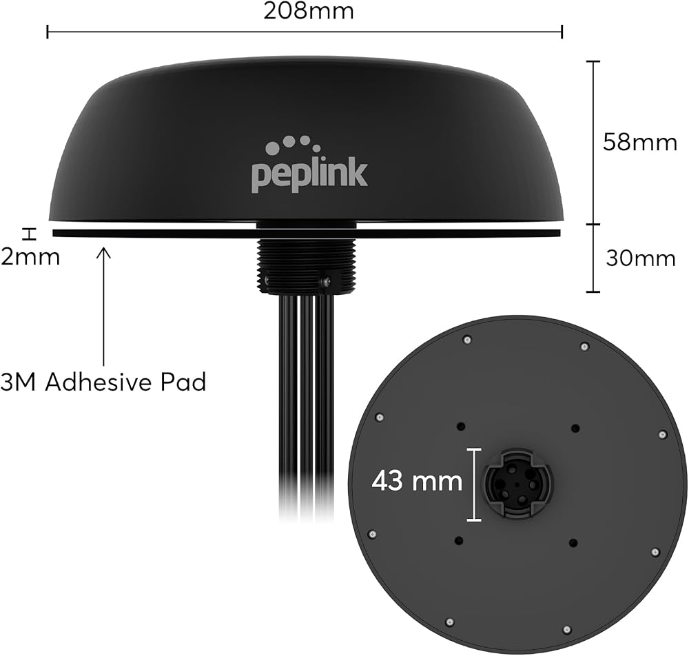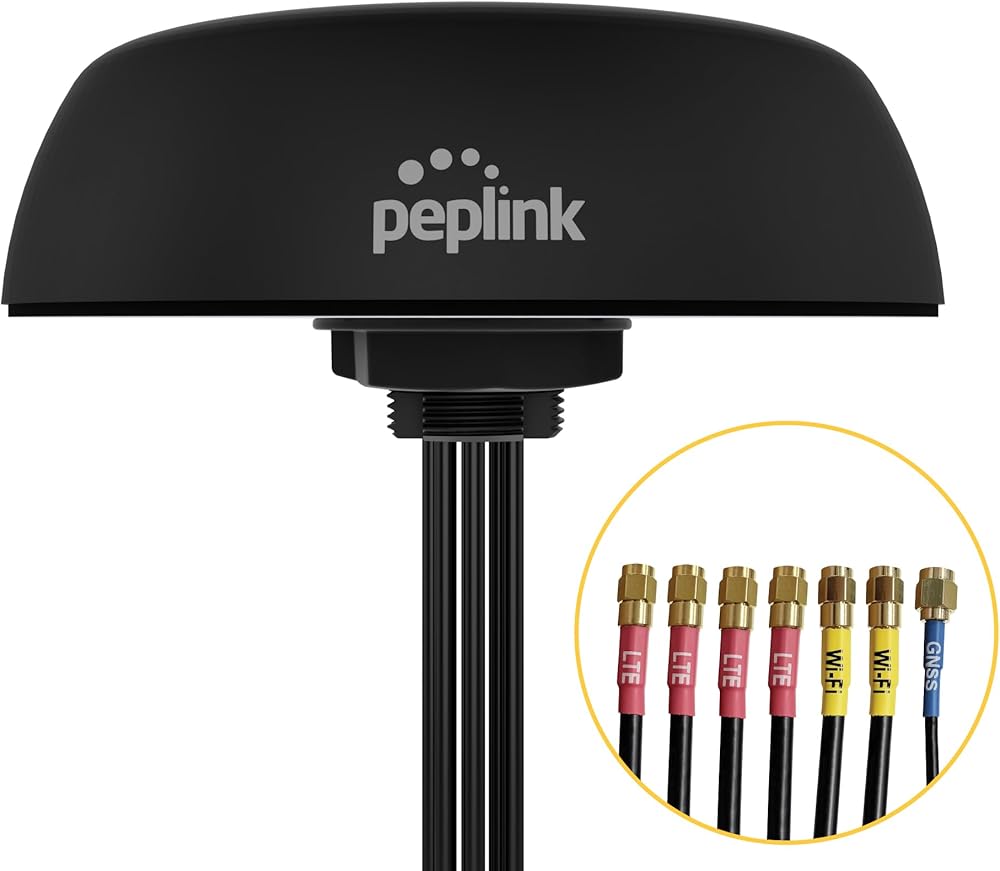 Peplink Mobility 42G، نظام هوائي خلوي وواي فاي جاهز 7 في 1 5G مع جهاز استقبال GPS، IP68، SMA، 6.5 قدم / 2 متر، أسود | أنت-MB-42G-S-B-6