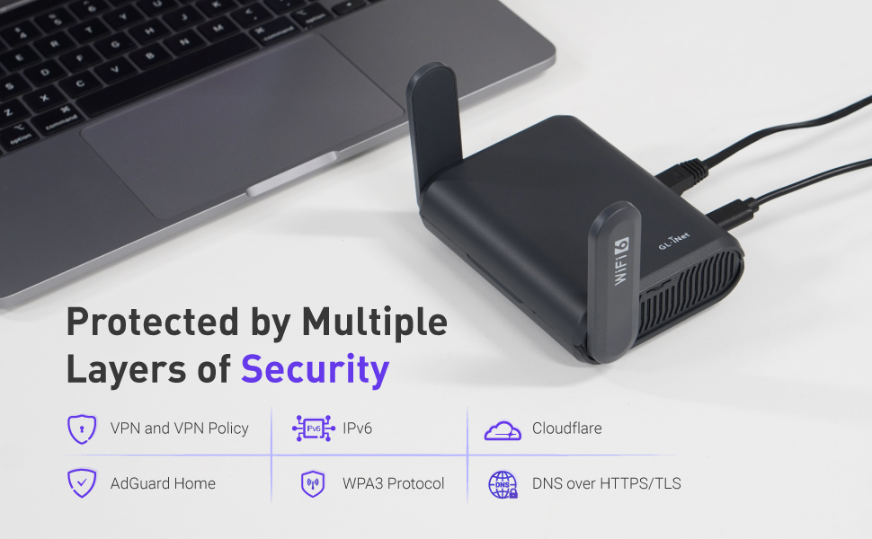 • 【تصفح سريع وآمن】يدعم IPv6؛ OpenVPN وWireGuard مثبتان مسبقًا، ومتوافقان مع أكثر من 30 من موفري خدمة VPN، وسرعة OpenVPN تصل إلى 120 ميجابت في الثانية؛ سرعة WireGuard تصل إلى 550 ميجابت في الثانية. دعم تشفير Cloudflare لحماية الخصوصية.