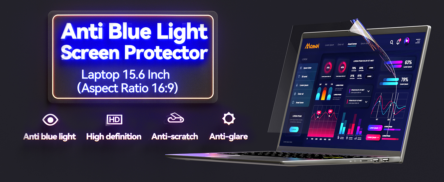 【تأثير مذهل مضاد للضوء الأزرق】لقد طور واقي الشاشة الذي يحجب الضوء الأزرق مادة جديدة مضادة للضوء الأزرق. هل مازلت قلقًا بشأن الدوخة وفقدان البصر واصفرار البشرة وتغميقها الناتج عن ساعات طويلة من استخدام الكمبيوتر المحمول؟ لا تتردد في الحصول على واقي شاشة الكمبيوتر المحمول ذو الضوء الأزرق من مامول مقاس 15.6 بوصة وتخلص من مخاوفك.