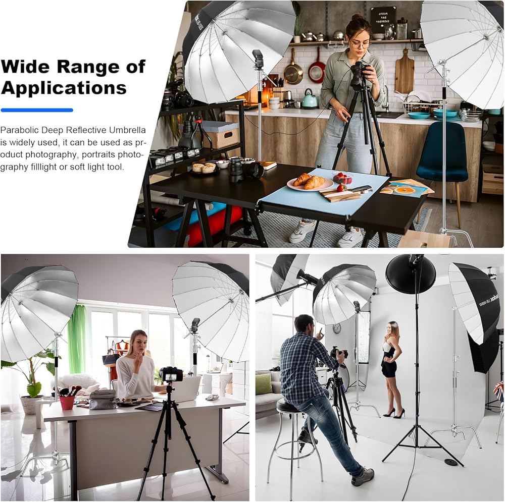 • ☂️【مظلة عاكسة غودوكس مكافئ】يعتمد عاكس مكافئ غودوكس على تصميم مكافئ، والذي يتميز بعمق كبير وتغيير ضوء أكثر اتساقًا. ابحث عن الحرية لتشكيل الضوء. من خلال تغيير وضع انعكاس الضوء، واختيار أحجام مختلفة من المظلات والبطانات العاكسة وإضافة موزعات وما إلى ذلك، يمكن الحصول على تأثيرات ضوئية مختلفة بسهولة. إنه خيار مثالي للتصوير الفوتوغرافي للصور الشخصية وتصوير الأزياء.