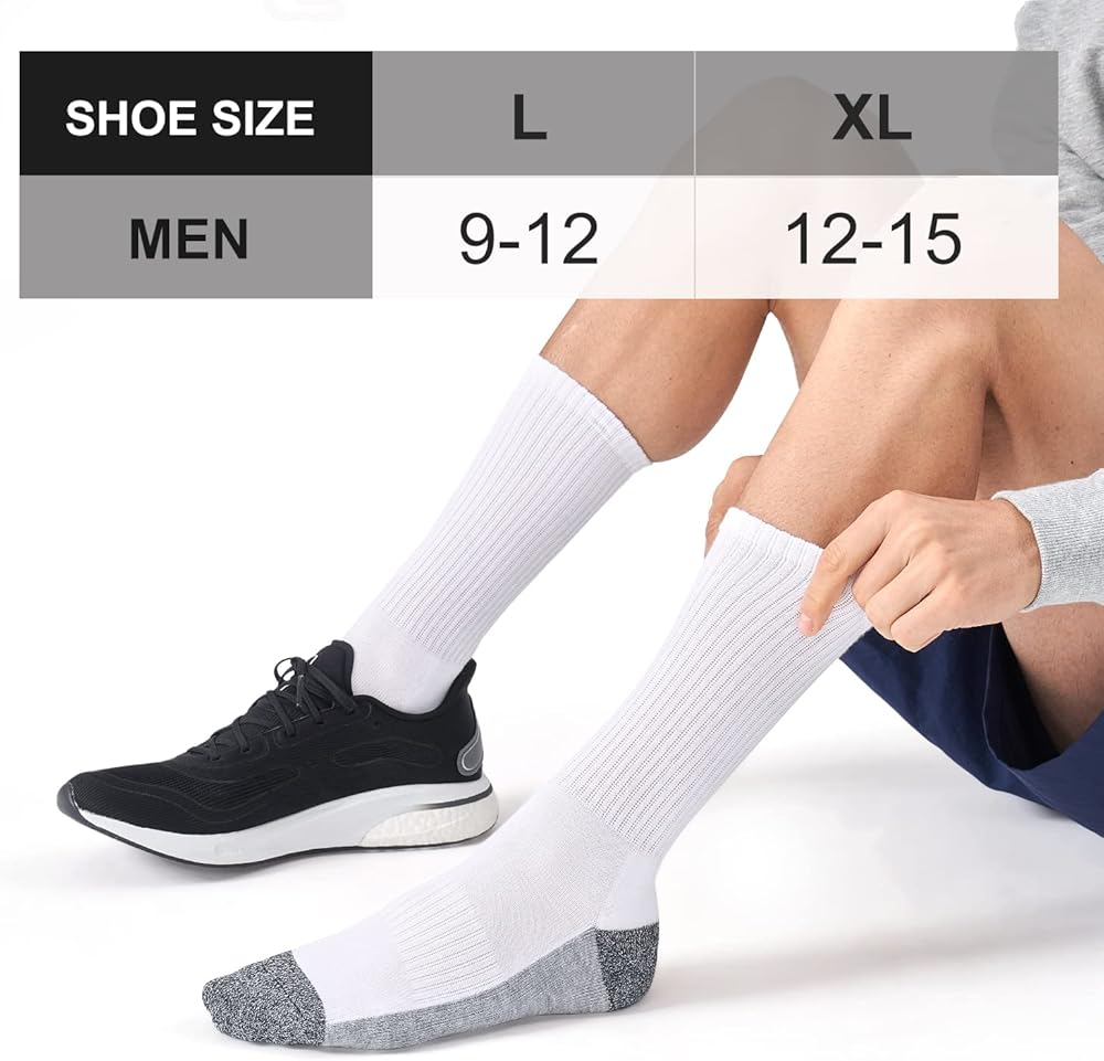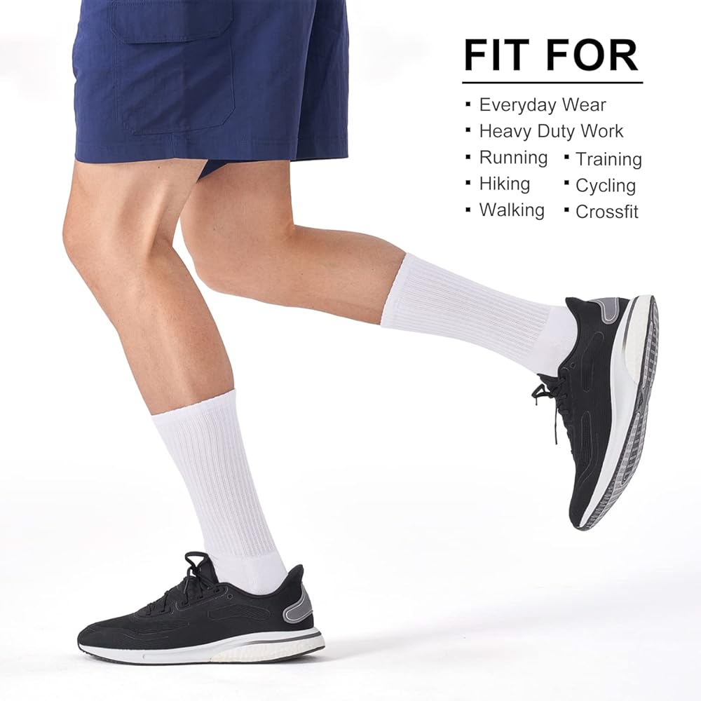 مثالية لأحذية العمل/الأحذية الرياضية/الأحذية الرياضية - الجوارب الرجالية الدائرية تمتص العرق للحفاظ على برودة القدمين، مما يوفر التحكم في الرطوبة والراحة والدعم أثناء العمل الشاق أو الارتداء اليومي أو ممارسة التمارين.