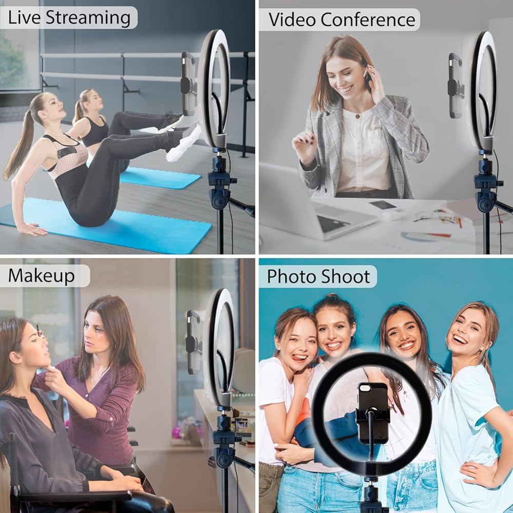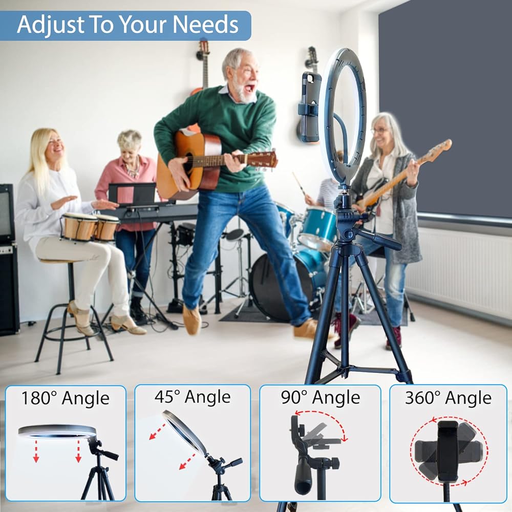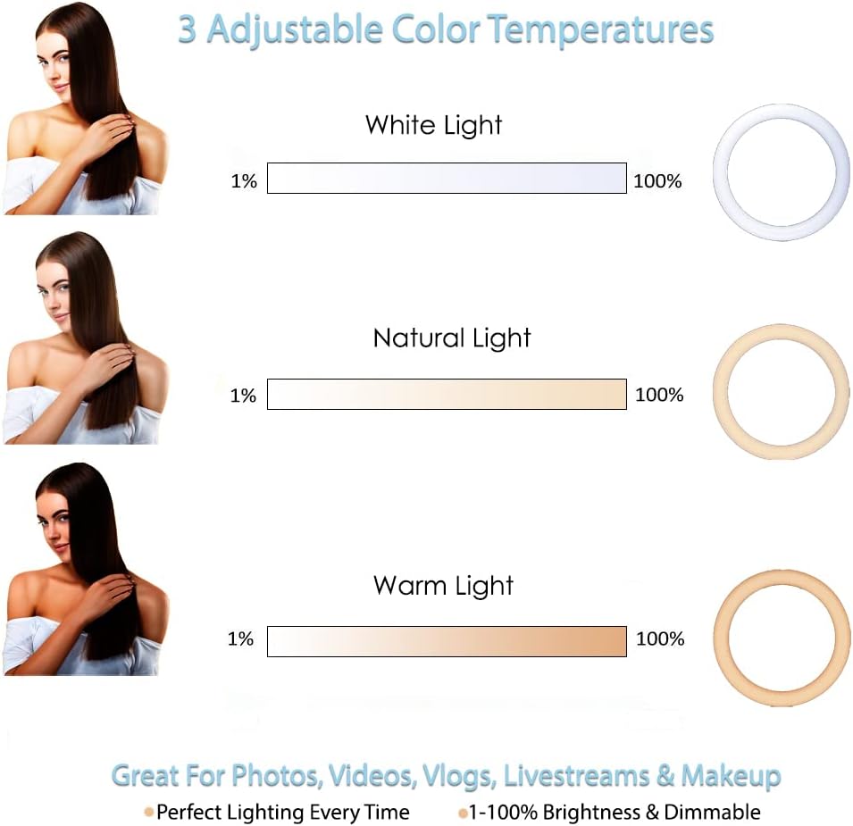 ضوء حلقة محمول للصور والفيديو والمكياج مقاس 12 بوصة > ضوء حلقي مثالي للصور ومقاطع الفيديو ومدونات الفيديو والبث المباشر والمكياج وTikTok. ألوان قابلة للتعديل وأكثر إضاءة من الأضواء الحلقية القياسية. مدعوم بكابل USB باستخدام جهاز كمبيوتر وبنك طاقة وUSB شاحن.