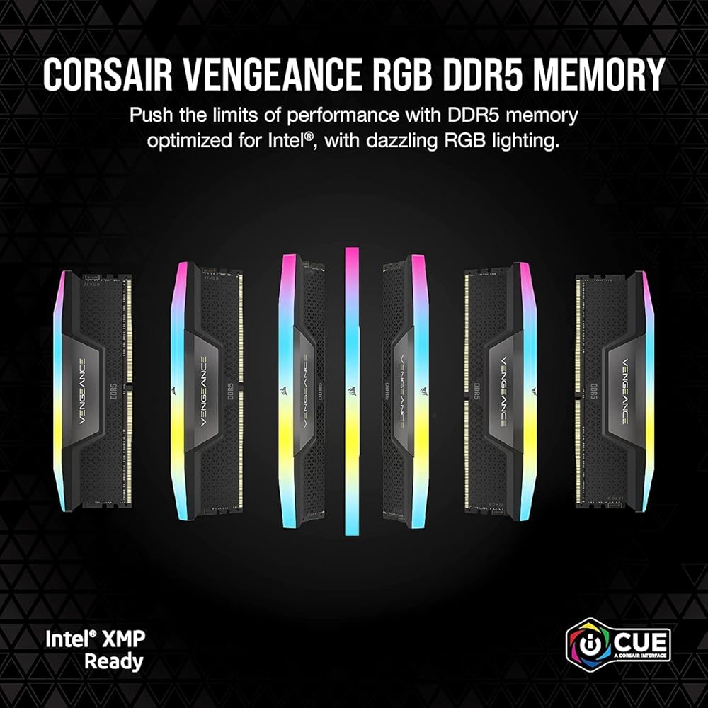 توفر ذاكرة CORSAIR VENGEANCE RGB DDR5 أداء DDR5 وترددات أعلى وقدرات أكبر محسنة للوحات الأم Intel® أثناء إضاءة جهاز الكمبيوتر الخاص بك بإضاءة RGB ديناميكية وقابلة للتوجيه بشكل فردي. تعمل شرائح الذاكرة عالية التردد التي تم فحصها بإحكام على تمكين المعالجة والعرض والتخزين المؤقت بشكل أسرع من أي وقت مضى، مع تنظيم الجهد الكهربي المدمج لزيادة سرعة التشغيل بسهولة ودقة. يمكنك التحكم باستخدام برنامج CORSAIR iCUE وتمكين تخصيص إضاءة RGB ومراقبة التردد في الوقت الفعلي وتنظيم الجهد الكهربي على اللوحة وتخصيص ملف تعريف Intel XMP 3.0. يوفر PCB المخصص جودة إشارة رائعة للأداء العالي والاستقرار على أحدث اللوحات الأم Intel DDR5. للحصول على أداء DDR5 المتطور مع إضاءة RGB الرائعة، تضيء VENGEANCE RGB DDR5 الطريق.