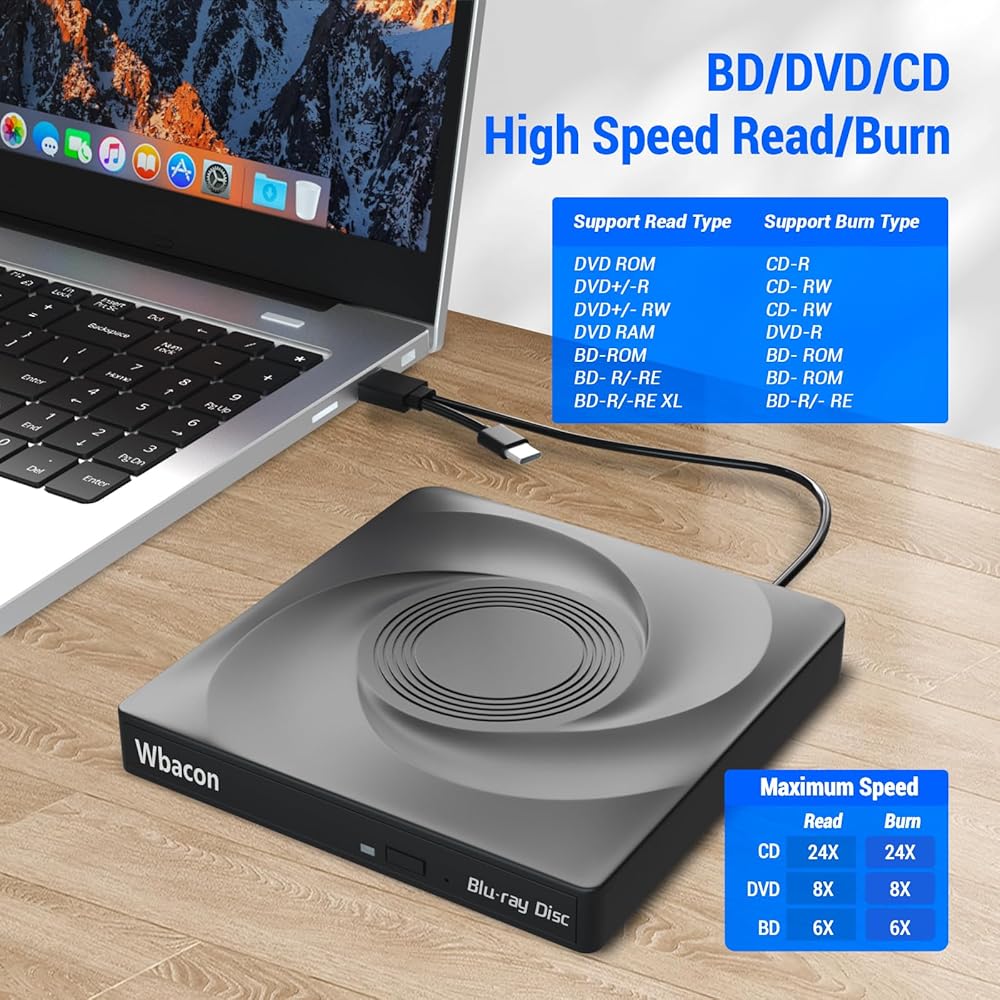 • شراء موثوق -- محرك أقراص بلو راي من دبليو باكون مدعوم بضمان جودة لمدة عام واحد. إذا واجهت أي مخاوف أو مشاكل مع المنتج عند استلامه، فلا تتردد في الاتصال بنا. نحن ملتزمون بضمان رضا عملائنا وسنبذل قصارى جهدنا لمساعدتك.