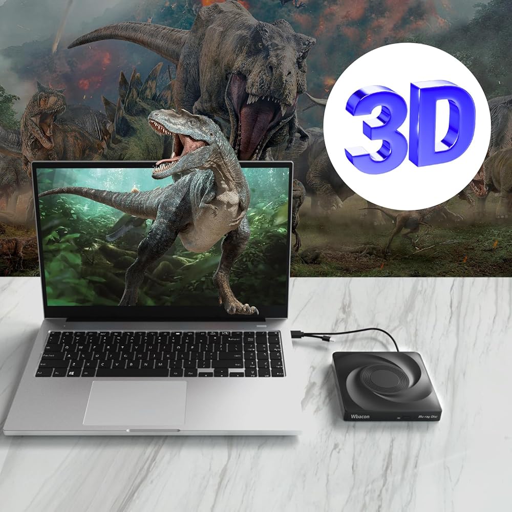 • ملاحظة --- يدعم محرك أقراص بلو راي الخارجي هذا التشغيل ثلاثي الأبعاد، مما يوفر لك وضوحًا نابض بالحياة يقترب من جودة 4K. ومع ذلك، من المهم ملاحظة أن محرك الأقراص لا يمكنه تشغيل أقراص 4 كيه الترا اتش دي. أيضًا، يرجى التأكد من أن برنامج التشغيل المثبت على جهاز الكمبيوتر الخاص بك متوافق مع تنسيق بلو راي. نقترح تنزيل البرنامج المجاني "Cyberlink BD&3D Advisor" وتثبيته على جهاز الكمبيوتر الخاص بك للتحقق مما إذا كان جهاز الكمبيوتر الخاص بك مجهزًا لتشغيل بلو راي أو ثلاثي الأبعاد.