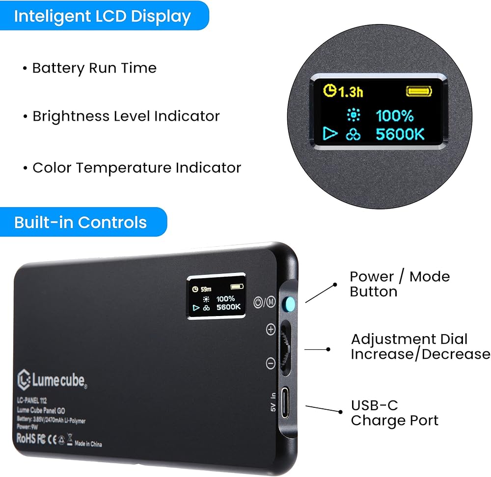 • إضاءة بحجم الهاتف الذكي: إضاءة الكاميرا مصنوعة من الألومنيوم المتين عالي الجودة. أضف إضاءة الكاميرا والصور إلى حقيبة الكاميرا الخاصة بك لالتقاط أفضل اللقطات والمساعدة في إتقان حرفتك!