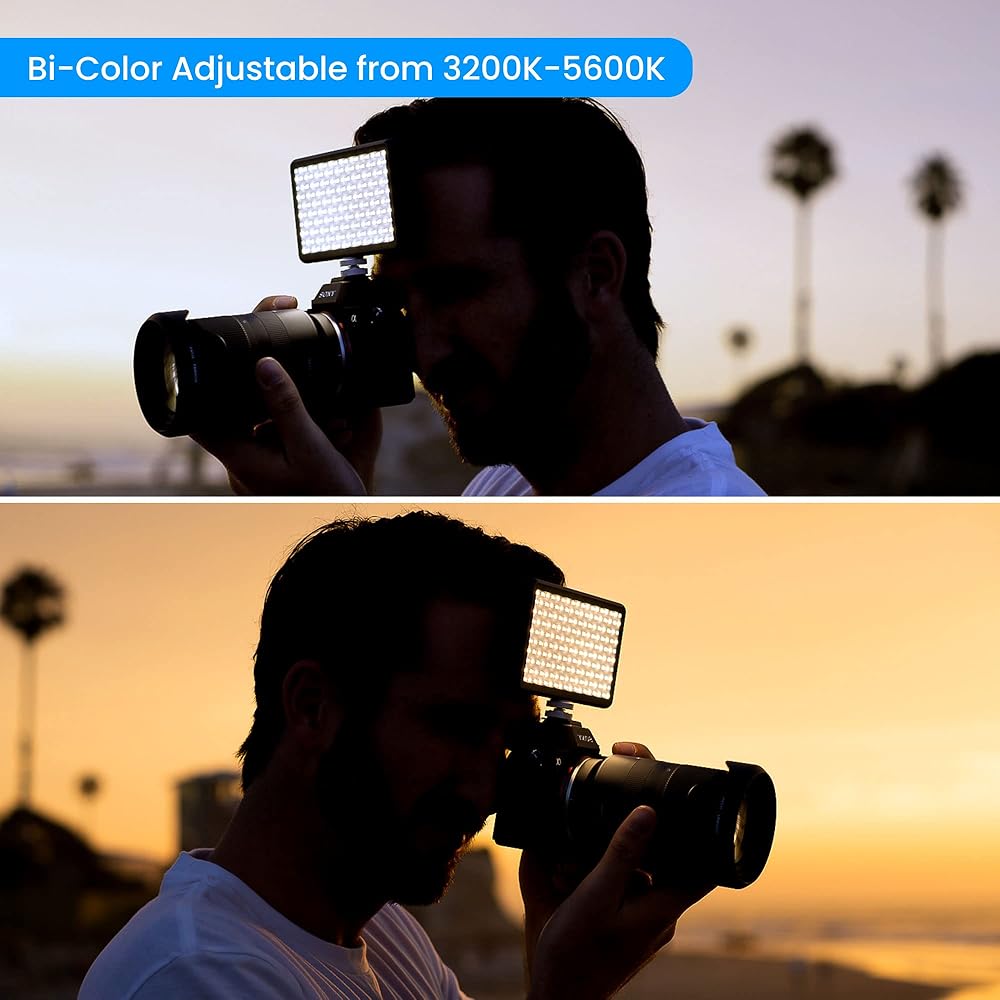 • درجة حرارة لون قابلة للتعديل: لوحة إضاءة LED خالية من الوميض مع درجة حرارة لون قابلة للتعديل من 3200 كلفن إلى 5600 كلفن. قم بإقران أضواء الكاميرا مع كاميرا دي اس ال ار للحصول على إضاءة تصوير مثالية.