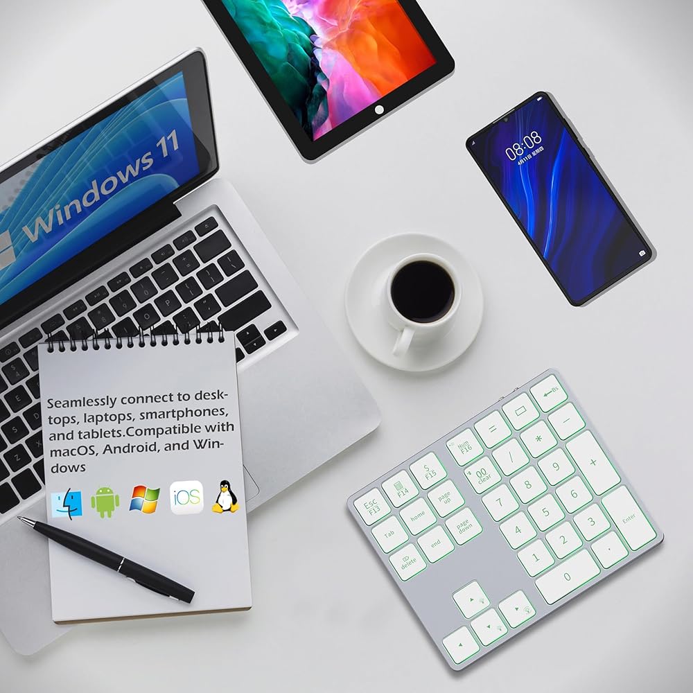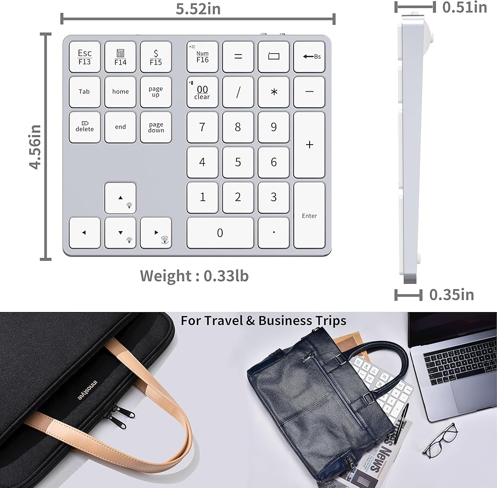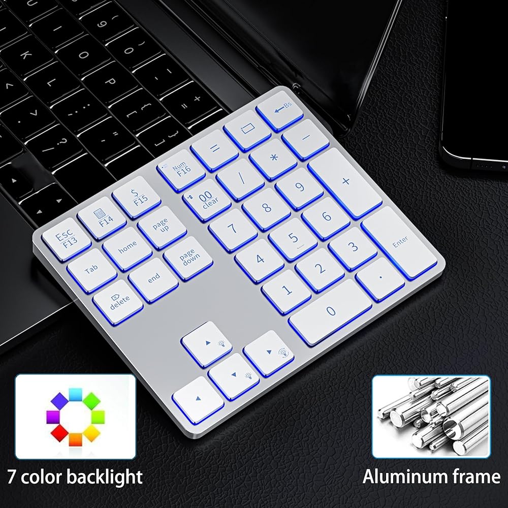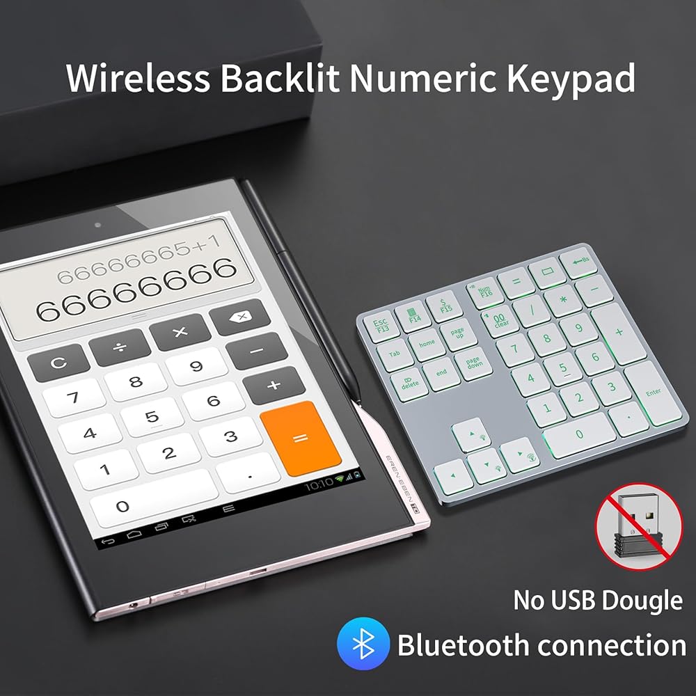 لوحة أرقام بلوتوث قابلة لإعادة الشحن من الألومنيوم فائقة الصغر لأجهزة الكمبيوتر المحمول: لوحة أرقام لنظام التشغيل Windows وMac OS وAndroid وiOS ولوحة مفاتيح رقمية لاسلكية للعمل والترفيه والدراسة