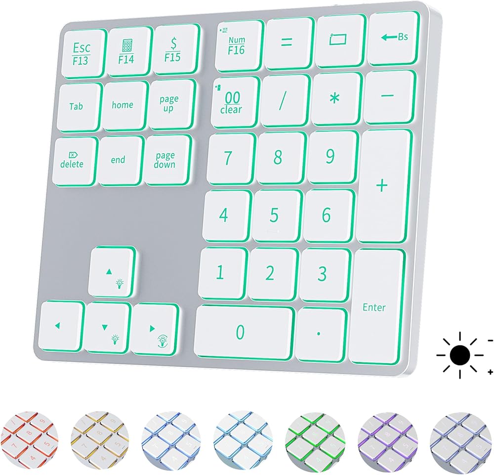 مفاتيح بإضاءة خلفية نابضة بالحياة: تعمل لوحة المفاتيح الرقمية على رفع مستوى تجربة الكتابة لديك من خلال الإضاءة الخلفية بسبعة ألوان وثلاثة مستويات سطوع قابلة للتعديل. سواء كان ذلك ليلاً أو نهارًا، ستحصل على الإضاءة المثالية.