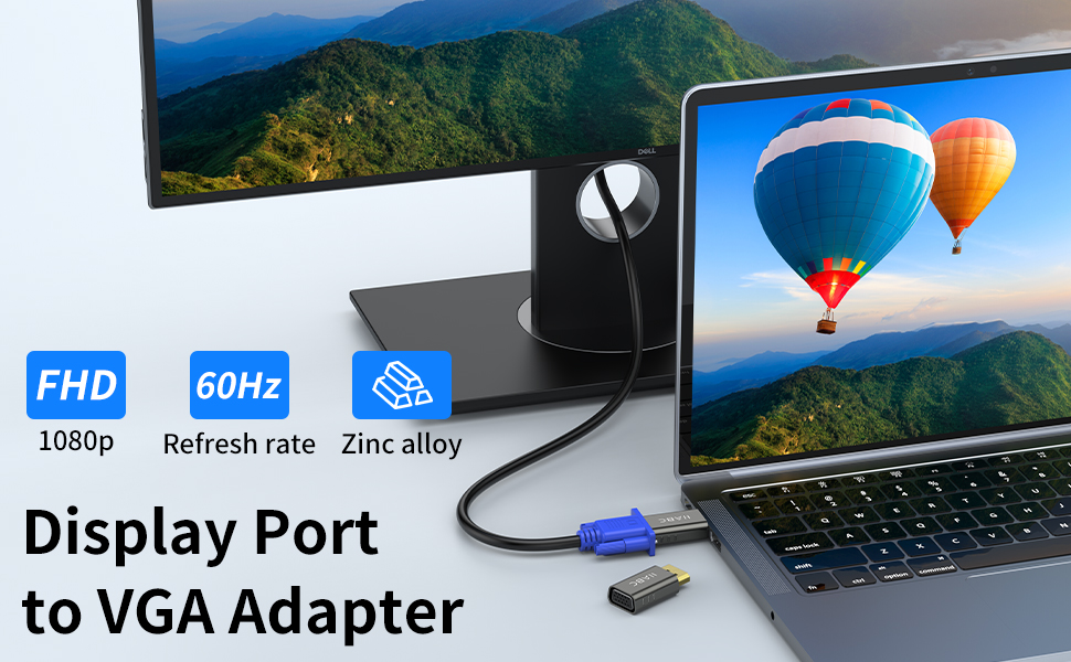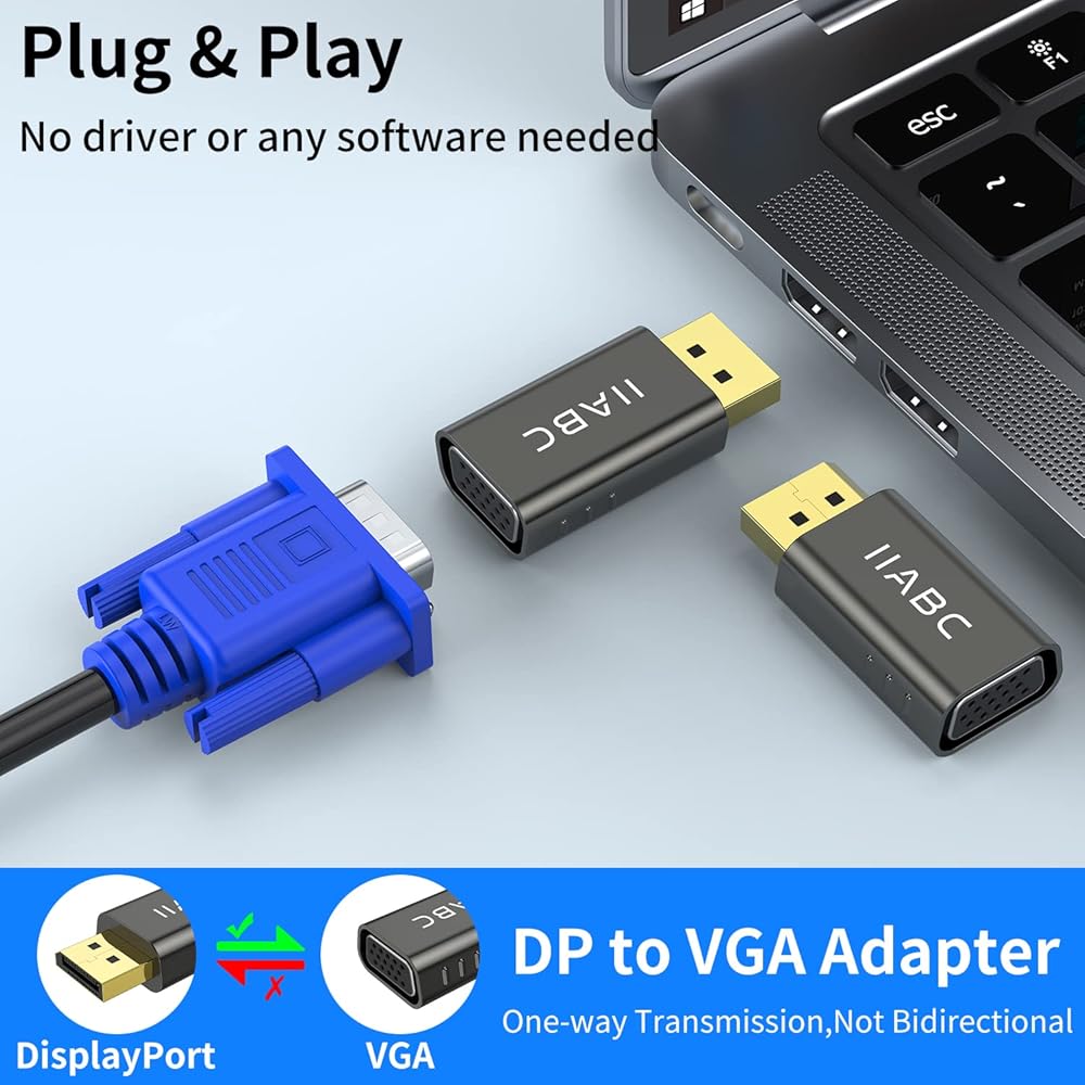 أداء لا يصدق - يدعم محول IIABC DisplayPort ذكر إلى أنثى VGA دقة فيديو تصل إلى 1920x1080@60 هرتز (1080p Full HD) / 1920x1200؛ موصل DP مطلي بالذهب يقاوم التآكل والتآكل ويحسن أداء نقل الإشارة.