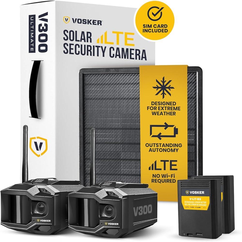 كاميرا مراقبة خارجية V300 Ultimate 4G-LTE مع لوحة شمسية خارجية | بنك الطاقة الشمسية الخارجي عالي السعة 15,000 مللي أمبير في الساعة | بطاقات SIM متضمنة | لا حاجة لشبكة WiFi | البث المباشر (2 حزمة)