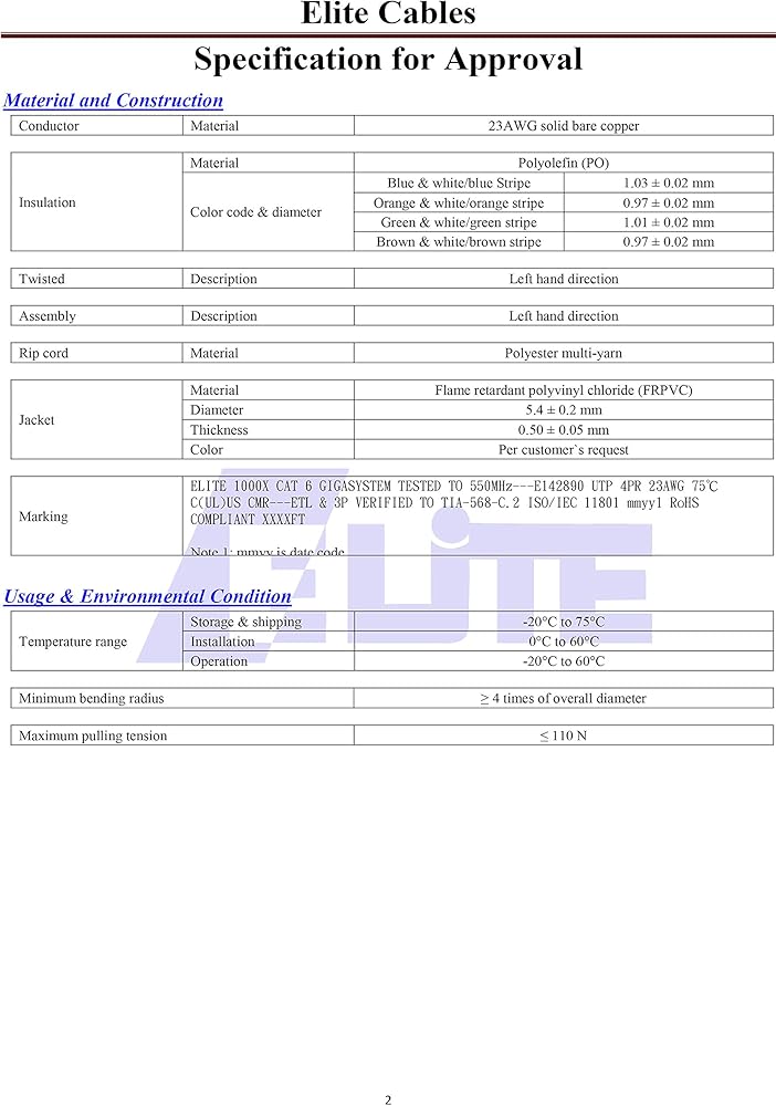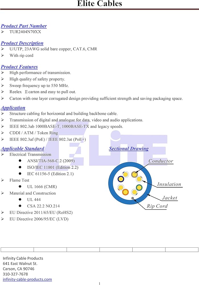 وصف المنتج تم تصميم كابل Elite Cable Cat6 Riser (CMR) مع مساحة رأسية لتقنيات LAN عالية السرعة الناشئة في المستقبل. تعتبر كابلات Cat6 CMR كبيرة الحجم (LAN) مثالية لشبكة Gigabit Ethernet وATM وBroadband Video وPoE. يتم تركيب هذا الكابل المصنف CMR في المناطق غير المكتملة، والجدران، ويمكن وضعه بين الأرضيات. تم تصميم رافع Elite Cat6 بأعلى المعايير التي ستجعل أي مشروع ناجحًا. تعد الميزات أعلى مستوى من الأداء وتتميز بأداء عالٍ لترددات النقل التي تصل إلى 550 ميجاهرتز. تم تصميم كابل Cat6 الصاعد هذا بدون شريحة عند الحاجة إلى قدر أكبر من المرونة. يتضمن Elite Cable مزيدًا من العزل حول الأسلاك ليمنحك الأداء الذي تريده ضد التداخل القريب. يتمتع الصندوق ذو التصميم المتطور بالقوة اللازمة للصمود في أي حالة ويجعل عملية السحب أمرًا سهلاً. علاوة على ذلك، فإن صندوق Reelex II صديق للبيئة وقابل لإعادة التدوير بنسبة 100%. تم تجميع الهيكل بشكل مثالي لإتقان أي مشروع وتكوين العمود الفقري الأفقي والمباني. تأتي الجودة أولاً مع كابل Elite Cat6 Riser حتى تعرف أن ما تحصل عليه هو خطوة إلى الأمام حقًا. نحاس نقي بنسبة 100% لأداء أفضل ويتجاوز معايير صناعة Cat6. يتم وضع علامة على كل ألف قدم من السترة كل قدمين حتى تعرف مقدار الطول المتبقي. قم بإقران هذا الكابل مع موصلات Cat6 غير المحمية للشبكة التي طالما أرادها منزلك أو عملك.