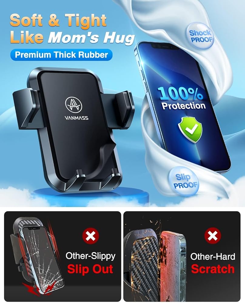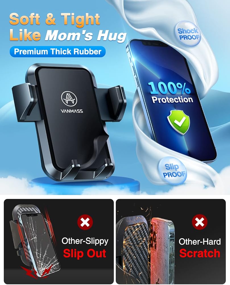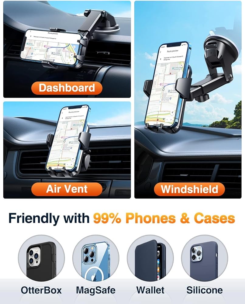 【مناسب للهاتف الكبير، ومناسب للحافظة السميكة】إنها هدية مثالية لعروضك الخاصة. لقد باع حامل هاتف السيارة الشهير هذا أكثر من 3.5 مليون منتج، وهو متوافق مع جميع الهواتف المحمولة مقاس 4 إلى 7 بوصات، ومتوافق مع iPhone وSamsung وPixel وHuawei وOnePlus وXiaomi وما إلى ذلك، ويدعم 99% من حافظات الهاتف، ويناسب جميع السيارات وصناديق السيارة، سيارات الدفع الرباعي والمركبات. يمكن تثبيته على لوحة القيادة المسطحة والزجاج الأمامي وفتحات الهواء الأفقية حسب الرغبة.