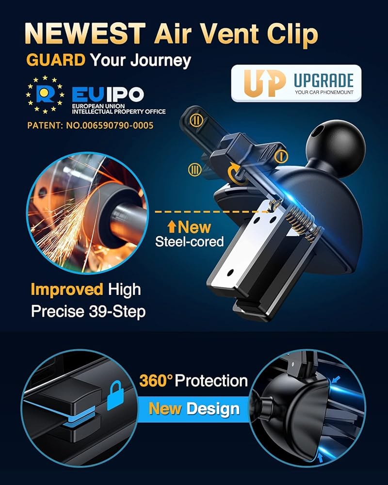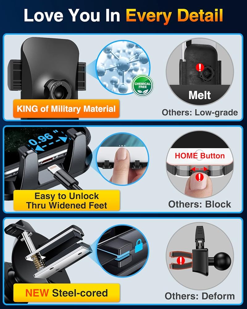 【حامل هاتف مطور حقيقي للسيارة في عام 2023】يتمتع حامل السيارة الرائع هذا (رقم براءة الاختراع 006590790-0003) بأقوى قوة ومقاومة عالية لدرجة الحرارة بعد 8 سنوات من تحليل أفضل 100 منتج، والاستماع إلى صوت أكثر من 32,000,000 مستخدم، وتحسين 121 النماذج واختبار 168 نوعا من المواد. نحن فخورون باجتياز اختبار درجة الحرارة القصوى (-40 درجة إلى 194 درجة فهرنهايت) واختبار الطريق لمدة 10 آلاف ساعة وحصلنا على شهادات رائدة عالميًا في CP65 وREACH وROHS.