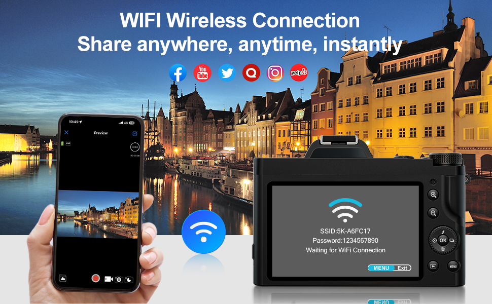 【كاميرا رقمية مع واي فاي】بالإضافة إلى إخراج الصور عالية الجودة، فإن كاميرا تسجيل الفيديو هذه مجهزة أيضًا بوظيفة واي فاي، مما يسمح لك بنقل الصور بسهولة إلى الأجهزة الذكية للمشاركة والتحرير. لا حاجة إلى نقل كابل بيانات مرهق، فقط تشغيل بسيط، يمكنك مشاركة جمال رحلتك مع أصدقائك وعائلتك، أو عرض صورك الفوتوغرافية على وسائل التواصل الاجتماعي. فهو يجعل التصوير أبسط وأكثر كفاءة، مما يتيح لك تسجيل اللحظات الجميلة في حياتك بسهولة.