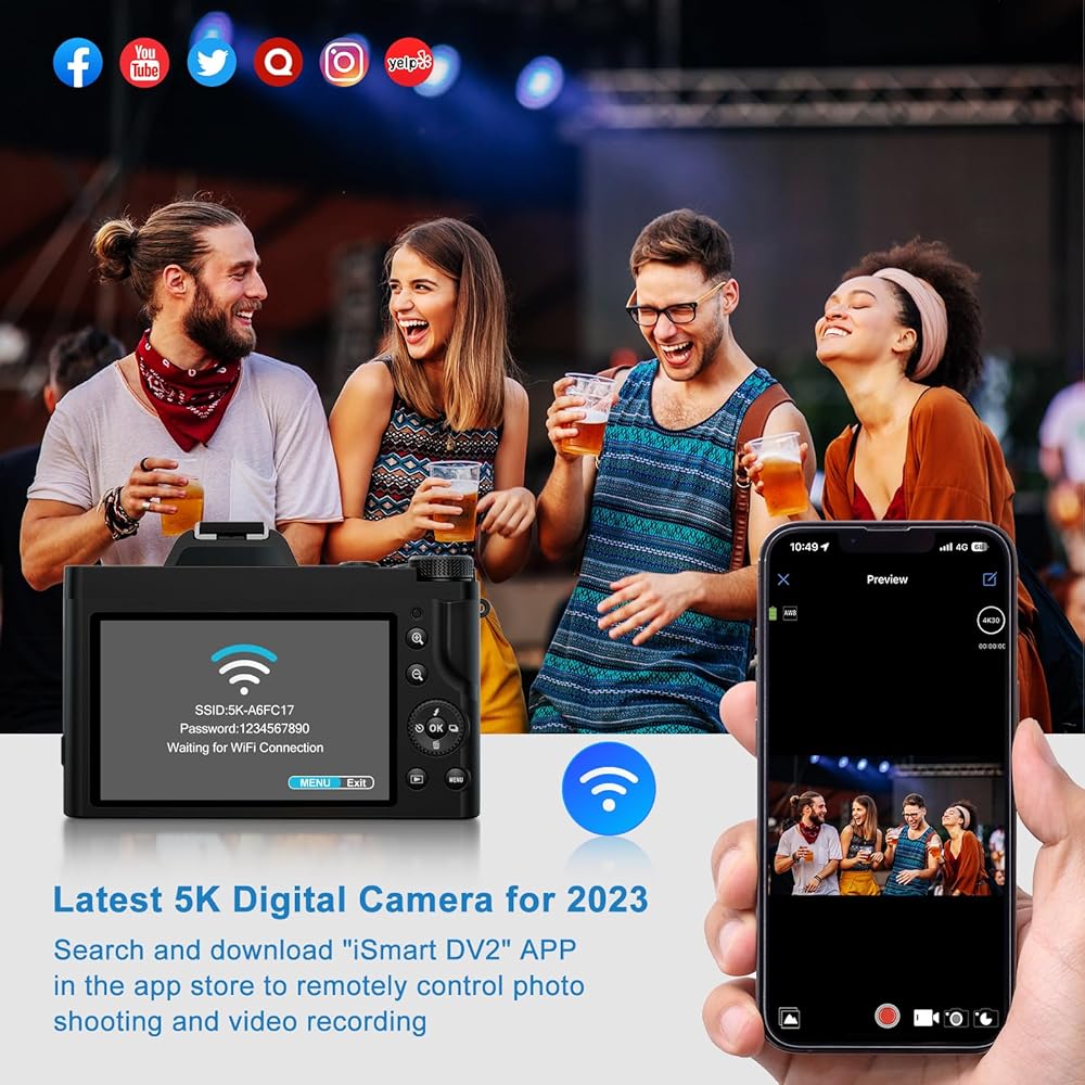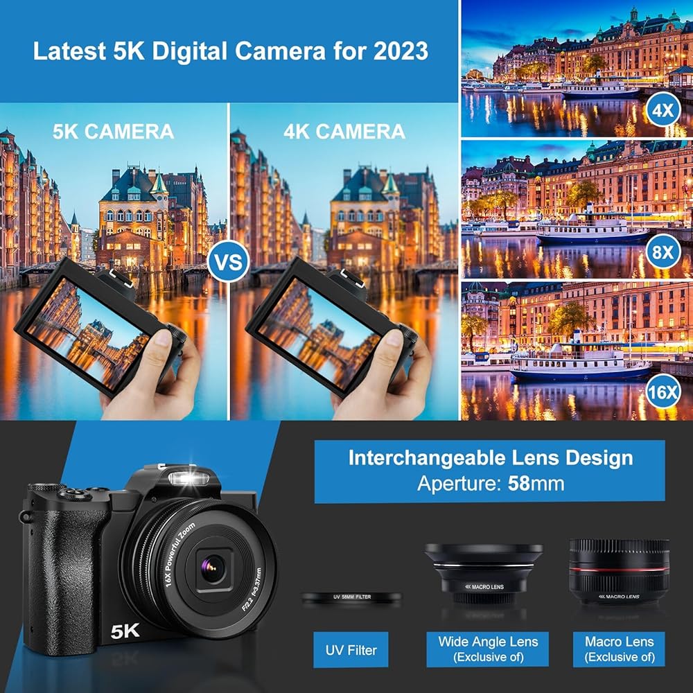 【كاميرا رقمية 5K مع بطاقة SD 32G】بالمقارنة مع 1080p و4K التقليدية، فإن الدقة العالية للغاية 5K تبرز تفاصيل الصورة بشكل أكثر وضوحًا وألوان أكثر حيوية، مما يعزز جودة الصورة بشكل كبير. 48 ميجابكسل من عدد البكسل العالي للغاية يجعل هذه الكاميرا الرقمية أفضل في التقاط التفاصيل. لا يحجب مرشح الأشعة فوق البنفسجية المضمن الأشعة فوق البنفسجية الضارة فحسب، بل يعزز أيضًا تباين الصورة وتشبعها، مما يجعل الصورة أكثر ألوانًا.