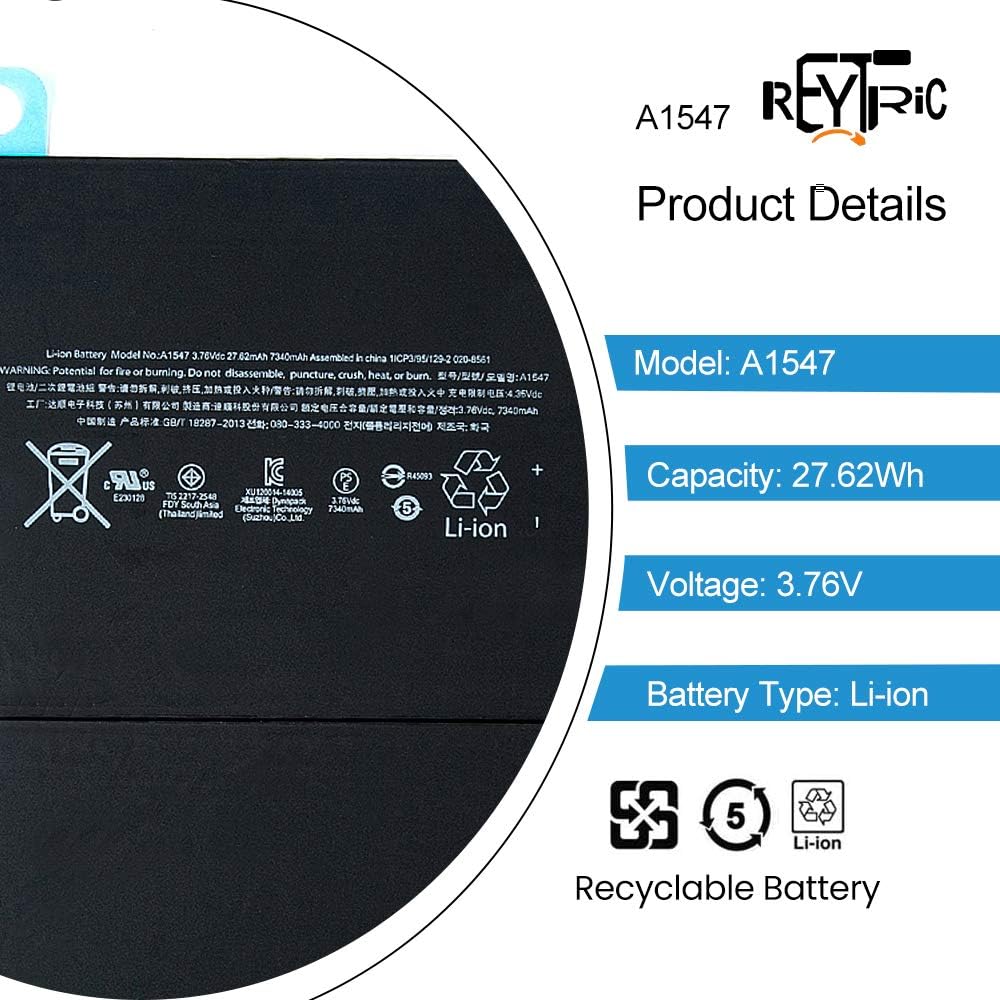 نوع البطارية: ليثيوم أيون الجهد: 3.76 فولت السعة: 7340 مللي أمبير 27.62 وات في الساعة