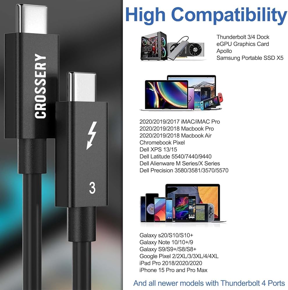 التوافق العبقري - كابل تمديد Crossery Thunderbolt 3 يعمل مع جميع العظماء؛ 2019-17 iMac/iMac Pro MacBook Pro 2020-19 Macbook Air ChromeBook Pixel Dell XPS 15. طالما أنه ليس جهاز سهم.