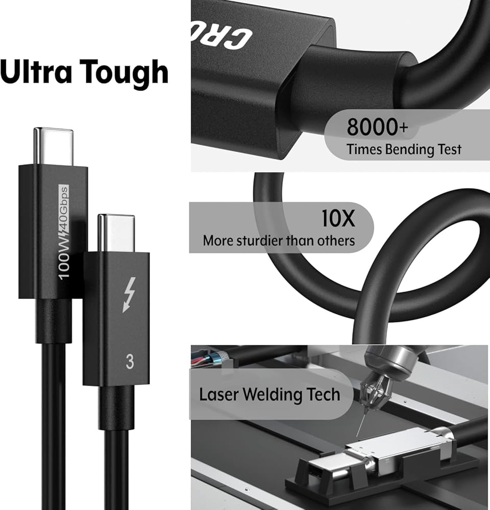 الوقت المستقبلي - لا يعد Crossery Thunderbolt 3 قابلاً للتكيف في المستقبل مع أجهزة كابل Thunderbolt 4 فحسب، بل إنه أيضًا متوافق مع أجهزة Thunderbolt 3 وUSB4 وUSB-C 3.2 و3.1 و2.0.