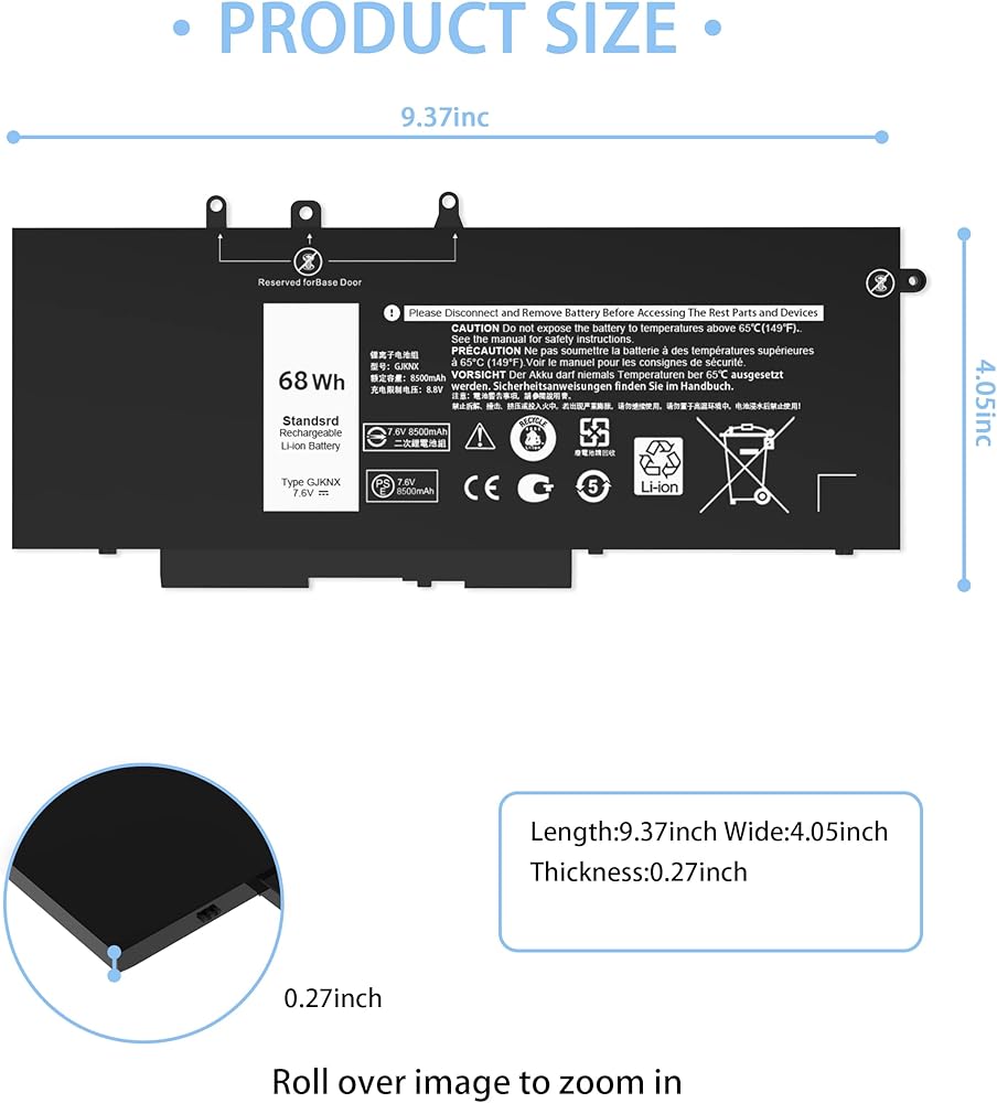 🔋 【نماذج الكمبيوتر المحمول المتوافقة 】GJKNX Dell استبدال بطارية Dell Latitude 5480 5580 5280 5288 5290 P72G001 P60F001، Dell Latitude 5488 5490 5491 5495، Dell Latitude 15-5590 15-5591، Dell Latitude E5280 E5288 E5 480 E5580 E5490 E5491 E5590 E5591، ديل الدقة 15-3520 3530 سلسلة.