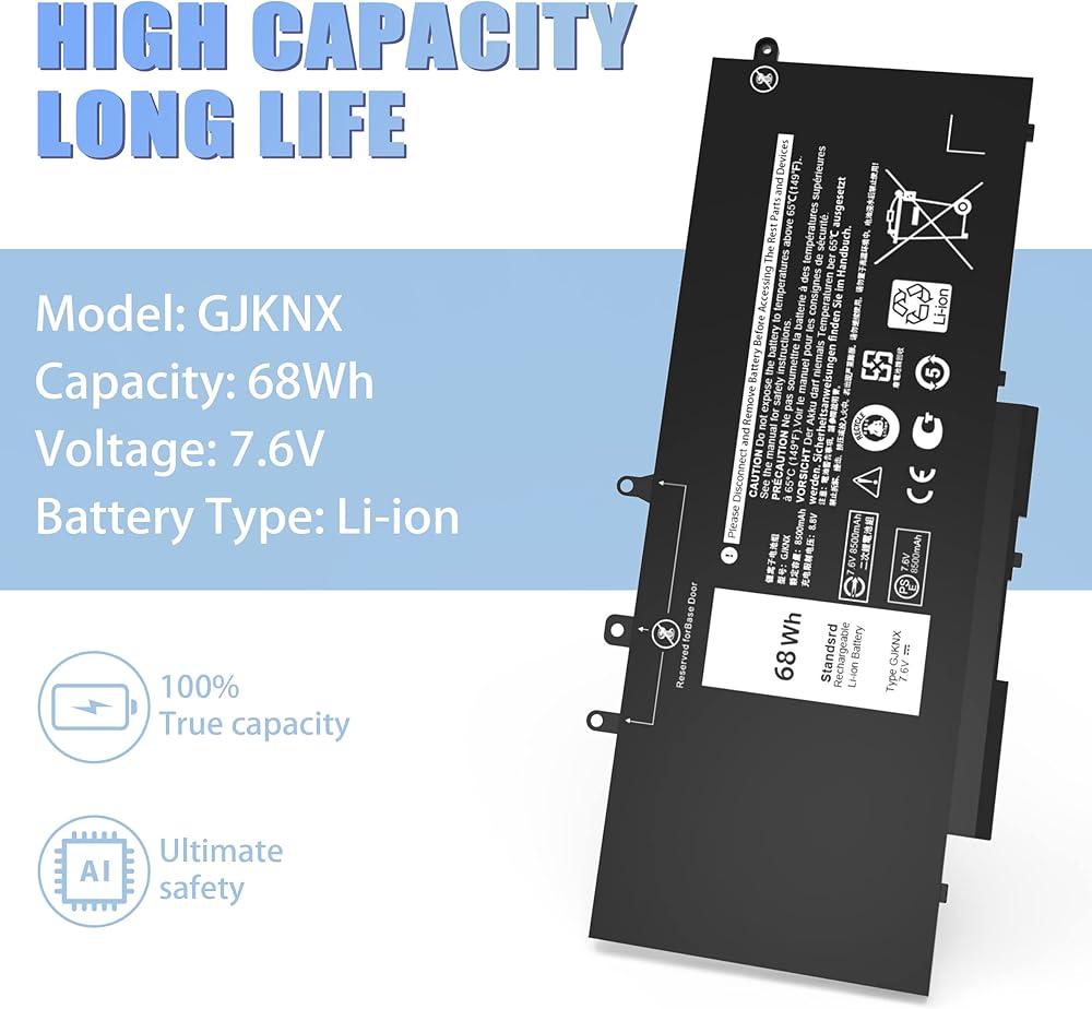 🔒【الأمان والموثوقية】يتم تجميع بطارية GJKNX الخاصة بنا باستخدام أجود المكونات، مما يضمن الأداء الأمثل والاعتمادية. لقد تم تصميمه ليفي بأعلى معايير الصناعة، مما يجعله خيارًا موثوقًا لجهاز الكمبيوتر المحمول Dell الخاص بك. بفضل الحماية المضمنة من الشحن الزائد والتفريغ الزائد، وحماية من درجة الحرارة الزائدة والدائرة القصيرة، يوفر مصدر طاقة آمنًا وموثوقًا لجهاز الكمبيوتر المحمول Dell الخاص بك. يمكنك استخدامه بثقة، مع العلم أنه جديد 100% من الشركة المصنعة.