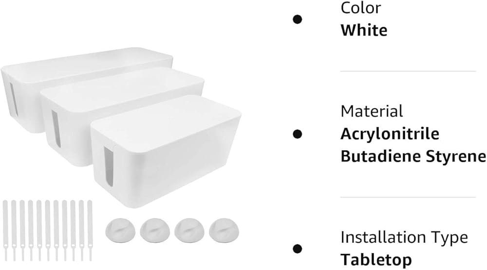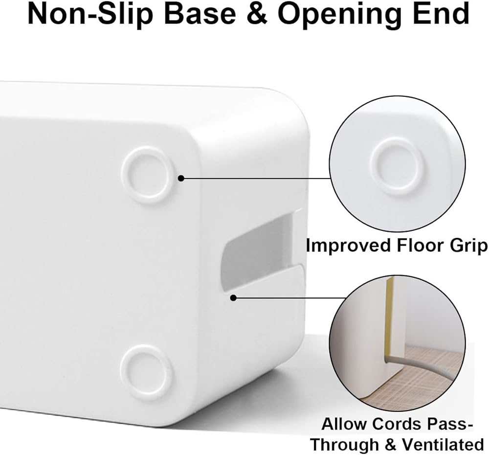 • قاعدة تهوية وغير قابلة للانزلاق - تحتوي جوانب صندوق الكابل على فتحات كبيرة في كل طرف للسماح للأسلاك بالمرور بسهولة، والحفاظ على مظهر أنيق. تعمل القواعد الخمس غير القابلة للانزلاق على تحسين الإمساك، مما يجعلها رائعة لإخفاء كابلات التلفزيون في المنزل أو كحل لإدارة الكابلات المكتبية في المكتب.