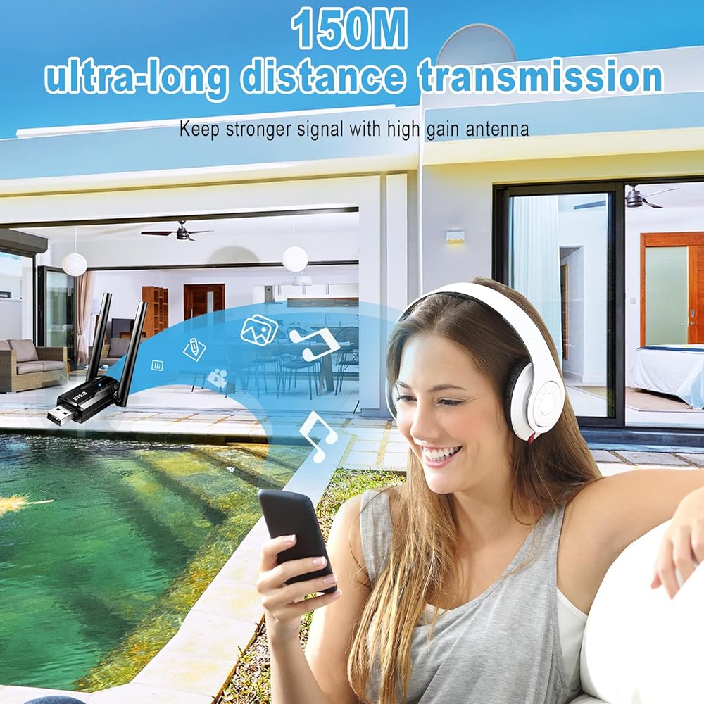 【USB بلوتوث طويل المدى】دونجل بلوتوث للكمبيوتر الشخصي مزود بهوائي عالي الكسب 2dBi وتقنية الراديو من الفئة 1، ويمكن أن يصل نطاق النقل في المناطق المفتوحة إلى 492 قدمًا/150 مترًا. تعد إشارة استقبال ونقل محول البلوتوث للكمبيوتر الشخصي أقوى وأسرع من محول USB التقليدي الذي يعمل بتقنية البلوتوث. استمتع بمتعة الاتصال اللاسلكي في المنزل دون الحاجة إلى التواجد حول الكمبيوتر، وخاليًا من حدود المسافة.