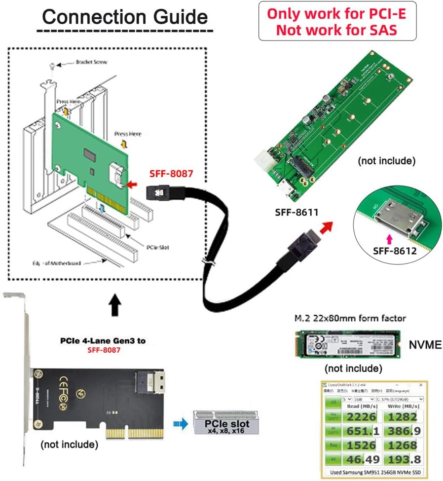 Cablecc SFF-8611 4i Oculink PCIe PCI-Express إلى 36Pin SFF-8087 Slimline PCIE SSD كابل بيانات نشط 50 سم