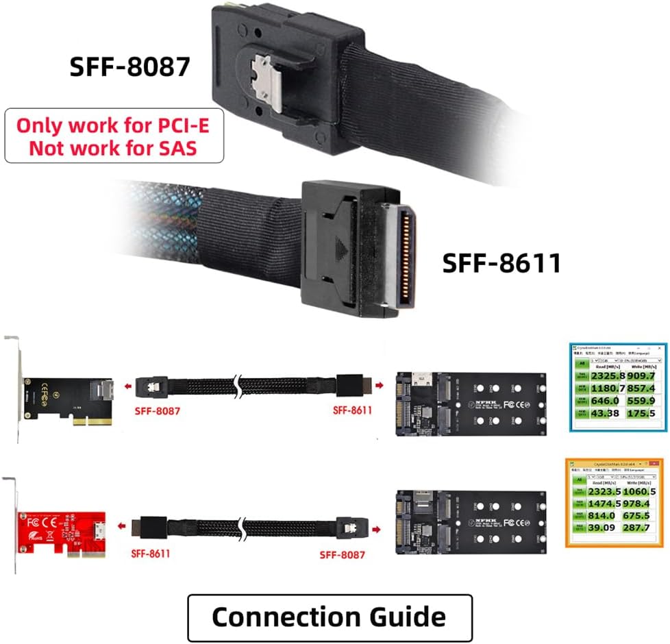 OCuLink PCIe SFF-8611 4i إلى OCuLink SFF-8611 SSD كابل بيانات نشط 50 سم