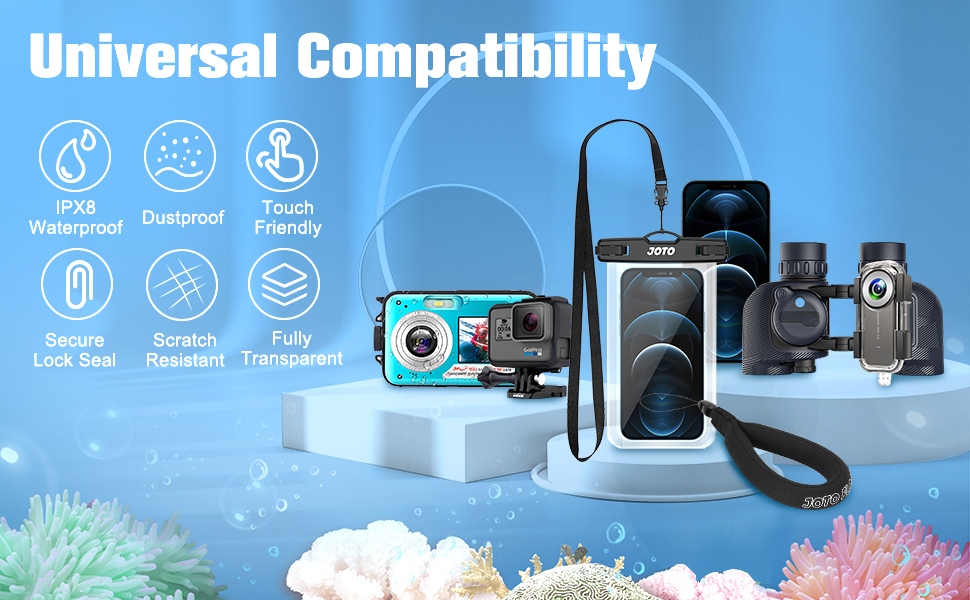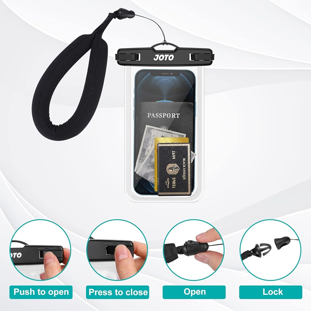 تتميز بإمكانية الوصول البسيطة والقفل، وسهلة للحفاظ على الماء والثلج والغبار والرمل والأوساخ؛ يأتي مع حزام رقبة لسهولة الحمل، مناسب للرحلات البحرية والسفن والشاطئ وصيد الأسماك والسباحة وركوب القوارب والتجديف والغطس وأنشطة الحديقة المائية