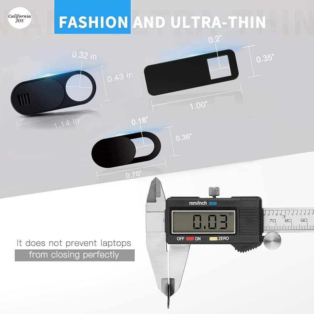 California JOS Webcam Cover Slide is designed to cover your webcam when not in use, and prevents web hackers from Spying on you. It is perfect to provide privacy, security and peace of mind to individuals, groups, organizations, companies and governments.