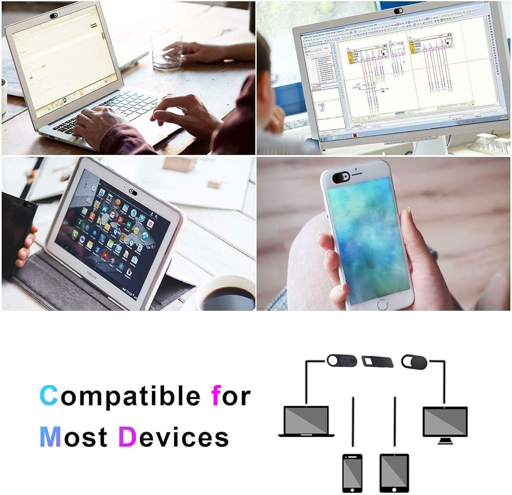 Our Camera Cover Slide is compatible with most Laptops, iPhone, iPad, PCs, Macbook, Macbook Pro, Smartphone, android phones, Tablets and All-in-one desktops. These webcam cover are designed to cover standard cameras from both laptops and other mobile devices, meet your everyday needs, protecting your personal privacy and security from everywhere.