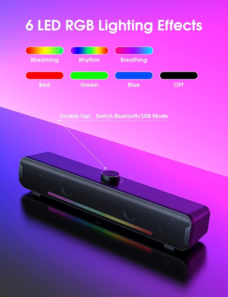 تأتي مجموعة مكبرات الصوت 2.0 بتصميم مضغوط، وتحتوي على 6 أوضاع من مصابيح RGB الملونة التي ستجعلك في حالة مزاجية للفوز.