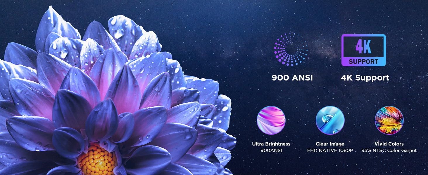 【دعم جهاز عرض 900 ANSI Ultra HD 1080P بدقة 4K】جهاز عرض خارجي DBPOWR RD828A 1080p HD تمت ترقيته استنادًا إلى RD828 الأصلي، ويستخدم تقنية LED فائقة السطوع وتقنية LCD مقاس 5 بوصات، مما يحسن السطوع بشكل كبير حتى 900ANSI، على الأقل بنسبة 50% حدة وسطوع أعلى من جهاز عرض أصلي مماثل في السوق بدقة 1080 بكسل مع جودة صورة أكثر حيوية؛ كما أنه يدعم فك تشفير مقاطع الفيديو بدقة 4K، ويدعم فقط تنسيق H.265 60 هرتز/MP4 وليس H.264، ويزيل القلق من ركود الفيديو، ويجلب لك وليمة بصرية حقيقية.