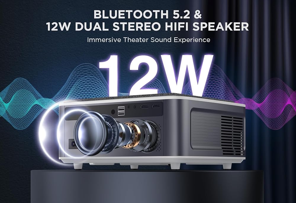 【WiFi6+5G/2.4G ثنائي النطاق WiFi+BT5.2】جهاز عرض DBPOWR RD828A 4k مع 5G WiFi Bluetooth مجهز بشريحة WiFi6، 5G+2.4G WiFi مزدوج النطاق، يتمتع بقدرة قوية ضد التداخل لضمان نقل سريع ومستقر بينما يقلل التأخير بنسبة 60% مقارنة بأجهزة عرض 5G WiFi Bluetooth الأخرى. يسمح أحدث BT5.2 باستخدامه كصوت BT مستقل، ويأتي مع مكبر صوت بقدرة 12 وات، ويمكنه توفير مكبر صوت واضح وعالي الصوت وإخراج جهير بدون مكبر صوت خارجي، ويمكن أيضًا توصيل مكبر صوت لإنشاء صوت غامر.