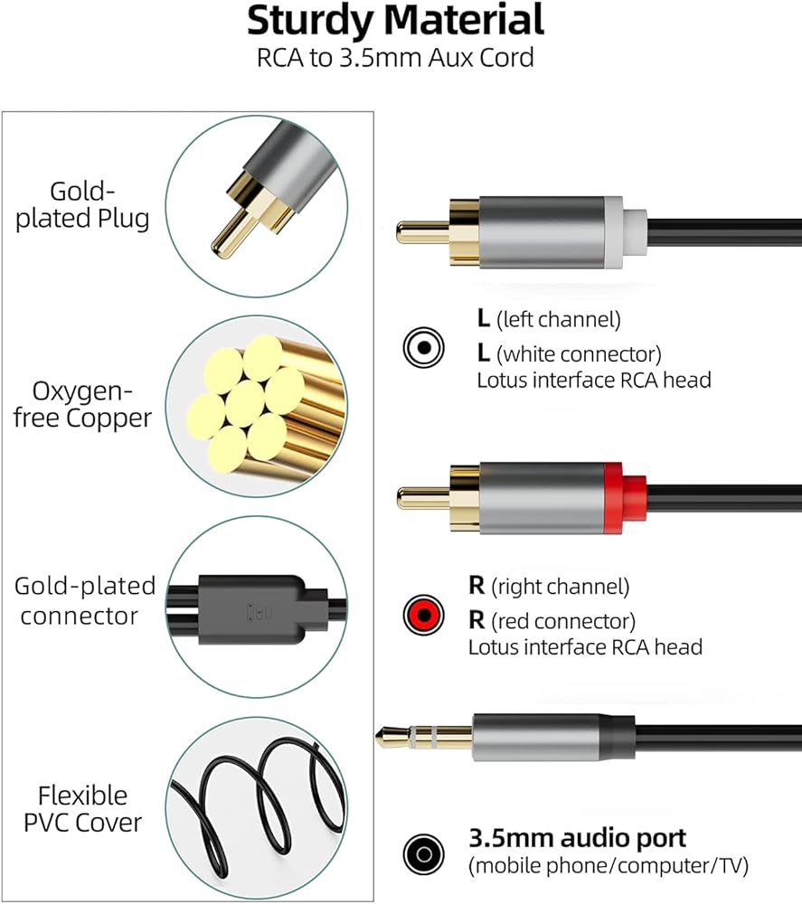 【على ماذا حصلت؟ 】1 × كابل RCA عالي الجودة إلى 3.5 مم (6.6أقدام) ودعم فني مدى الحياة، مدعوم بخدمة عملاء ودودة على مدار الساعة طوال أيام الأسبوع، كيف لديك أسئلة يرجى الاتصال بنا مباشرة، وسنقدم لك إجابة مرضية في أقصر وقت!