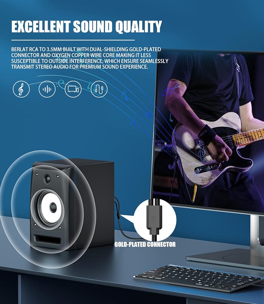 【جودة صوت ممتازة】تم تصميم SNLLMZI RCA إلى 3.5 مم مع موصل مطلي بالذهب مزدوج الحماية ونواة سلك نحاس الأكسجين مما يجعلها أقل عرضة للتداخل الخارجي، مما يضمن نقل صوت ستيريو بسلاسة للحصول على تجربة صوت ممتازة.