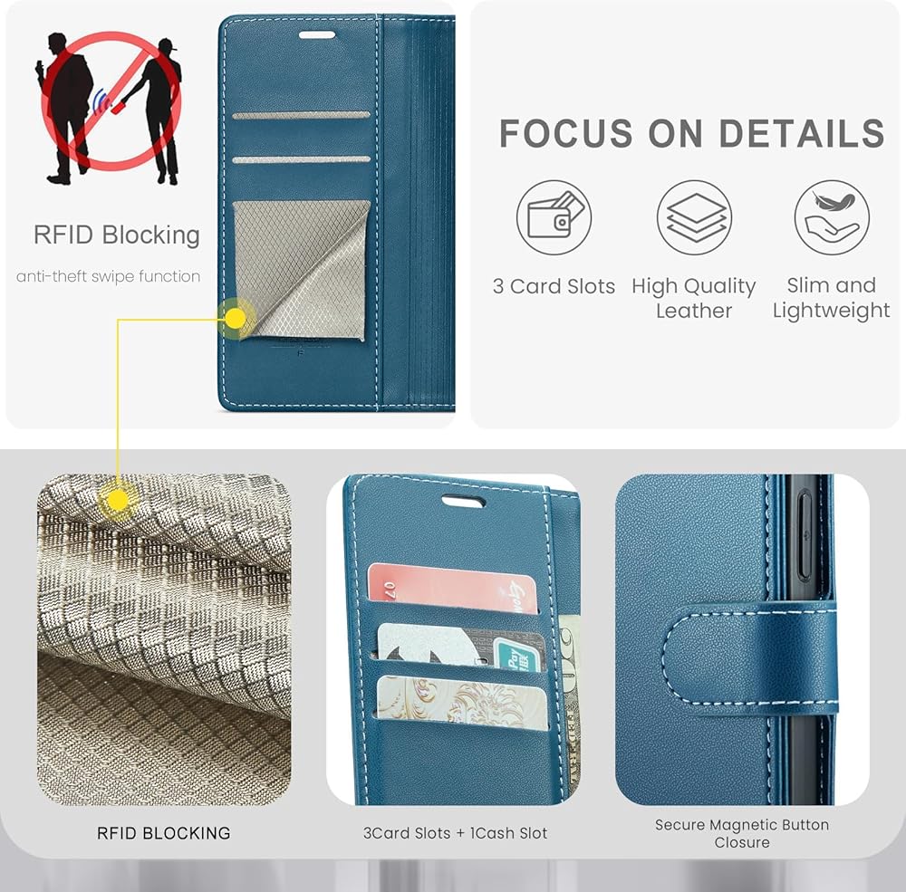 • [تقنية حماية RFID ووظيفة المسند الفاخرة] تم تجهيز حافظة محفظة FLIPALM بتقنية حماية RFID المصممة لحماية معلومات بطاقتك من سرقة الهوية. مع مادة حجب مبتكرة، ستجعلك تشعر بالأمان أينما كنت. يسمح لك الخط القابل للطي الموجود على الجزء الخلفي من الحافظة بتحويل حافظة المحفظة إلى مسند. توفر لك حافظة الهاتف على شكل كتاب مطوي تجربة بصرية مريحة ومرضية.